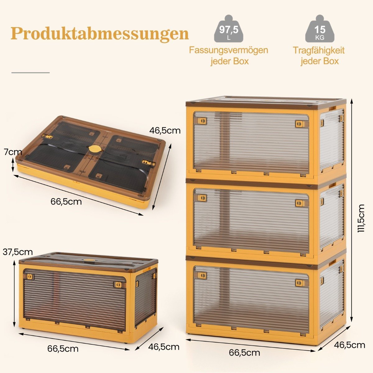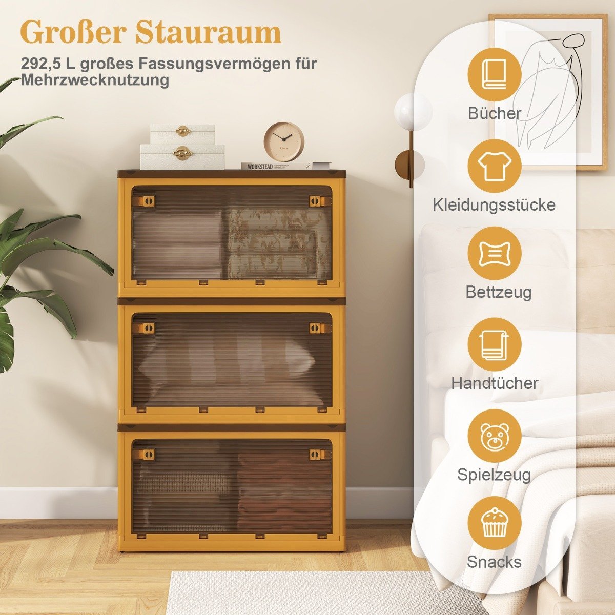 Didelės talpos 3 pakopų laikymo dėžės ratukais ir durelėmis (Geltona)