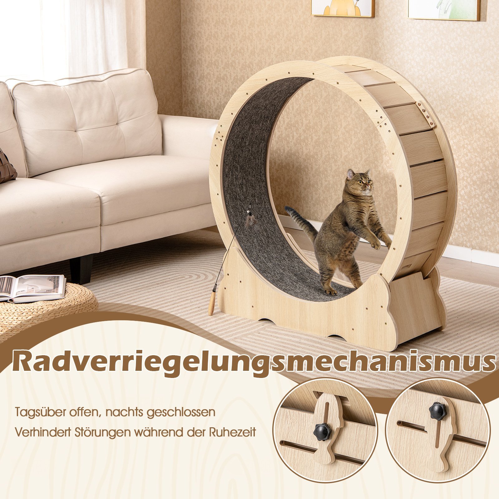 Didelis kačių treniruočių ratas su fiksavimo mechanizmu 101 cm (Natūrali)