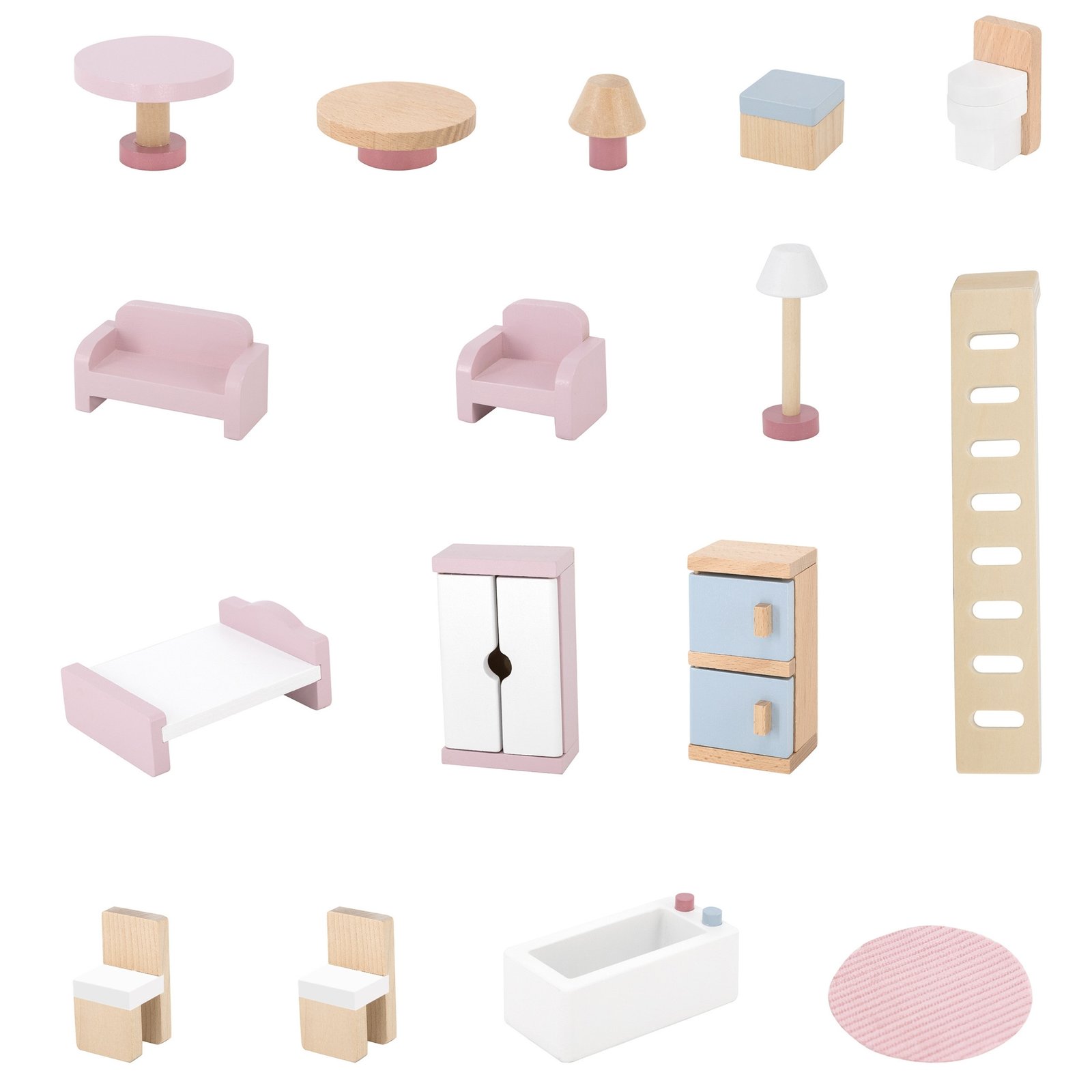 - Komplekte yra 16 skirtingų baldų.