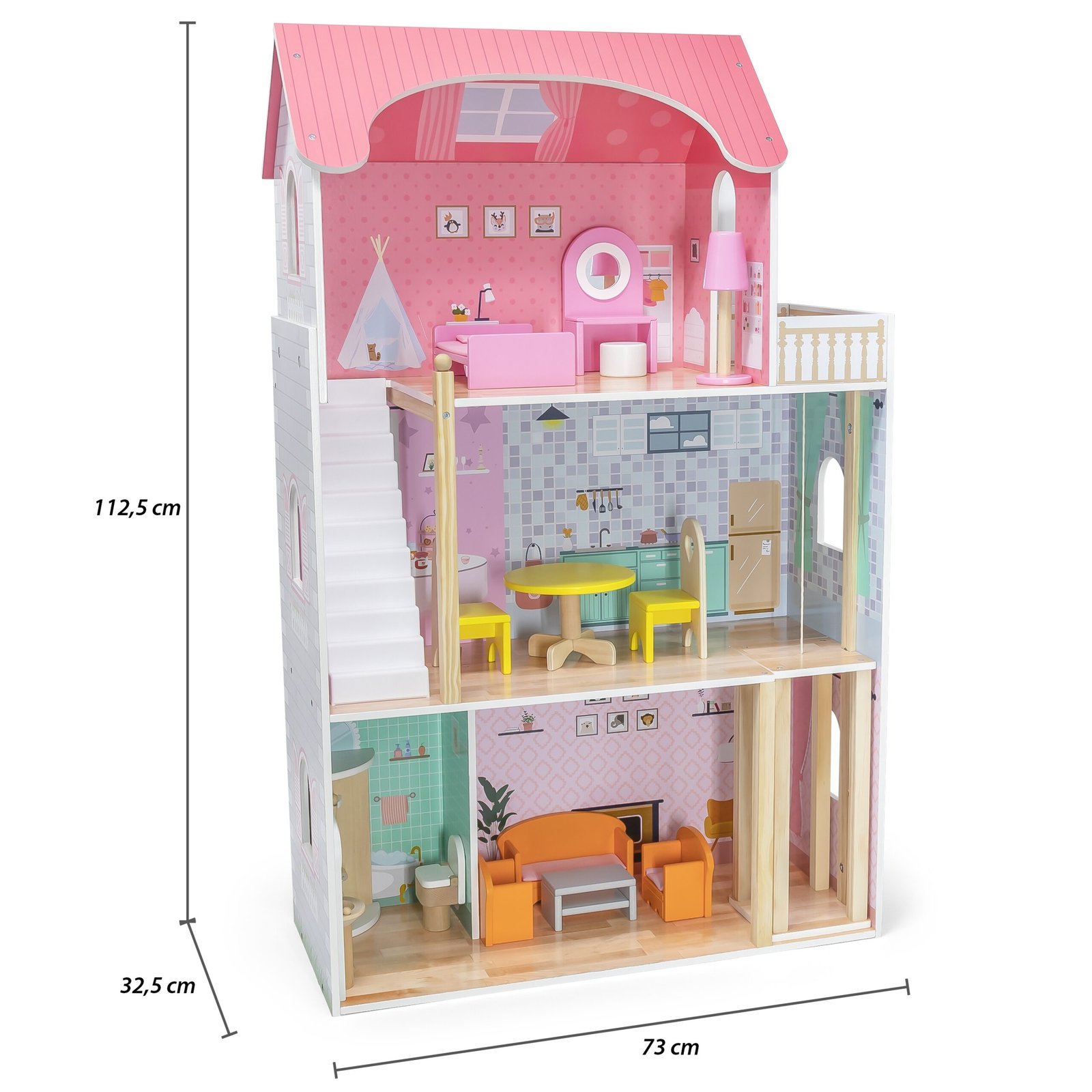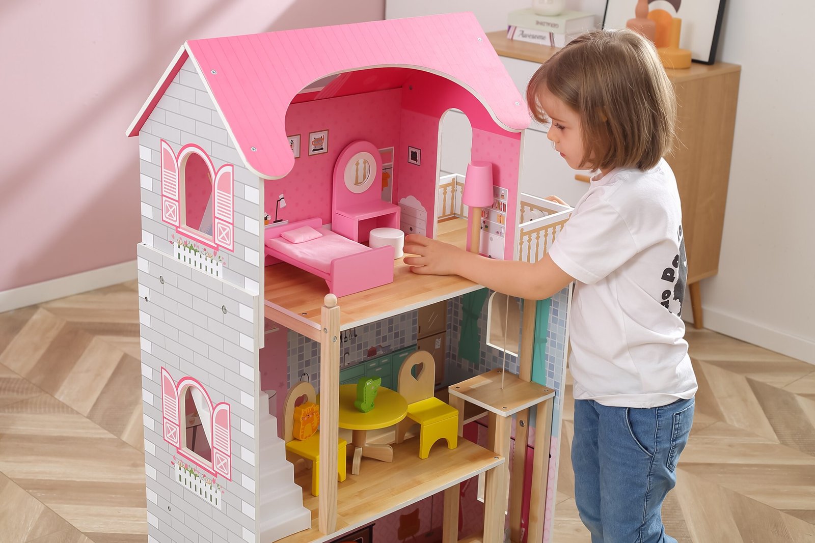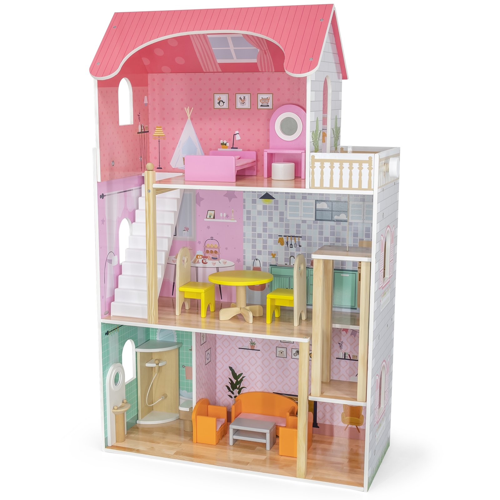 Medinis lėlių namelis, kuriame gausu kambarių, leis mergaitėms įsijausti į įvairius vaidmenis su savo lėlytėmis, figūrėlėmis ar pliušiniais žaislais. Savybės: