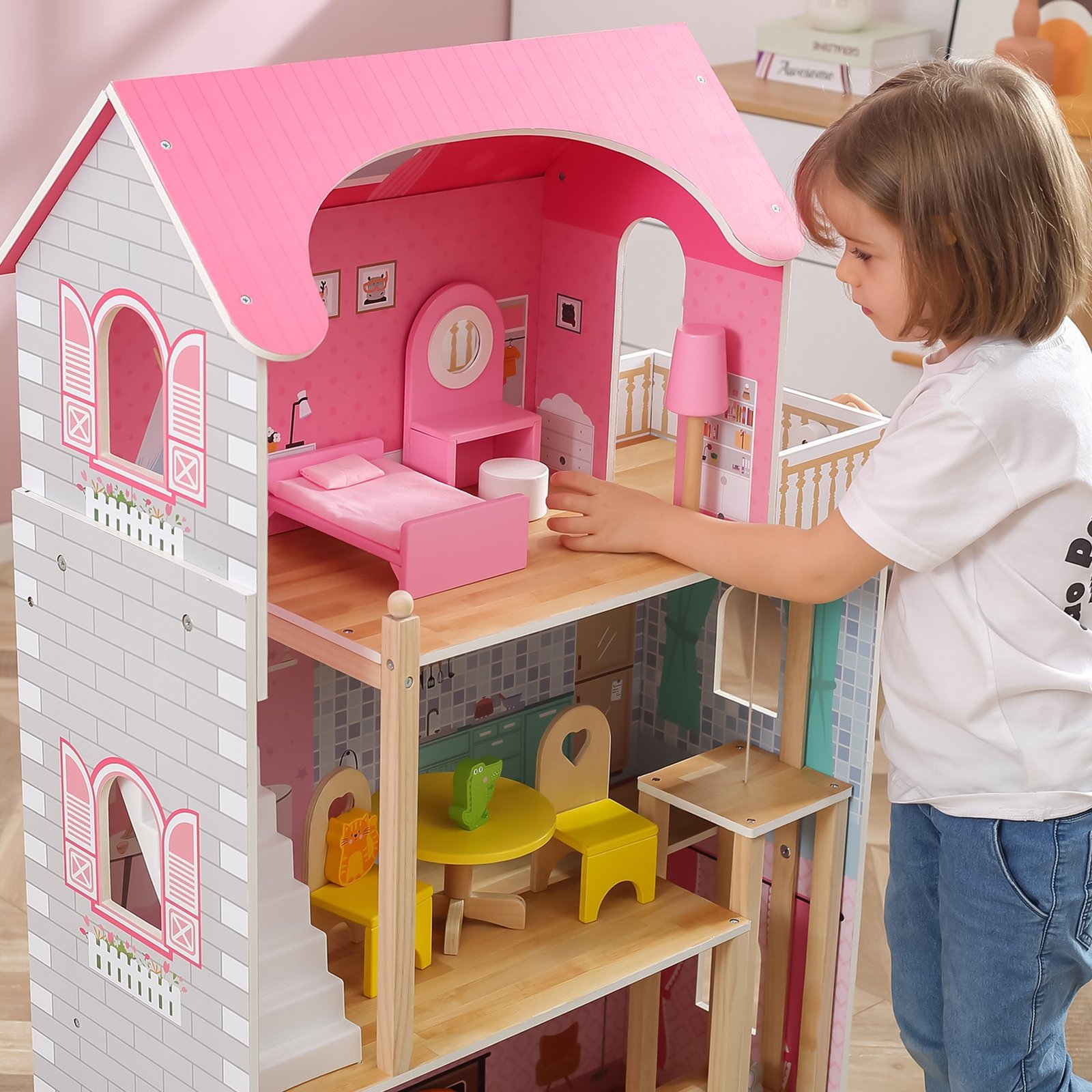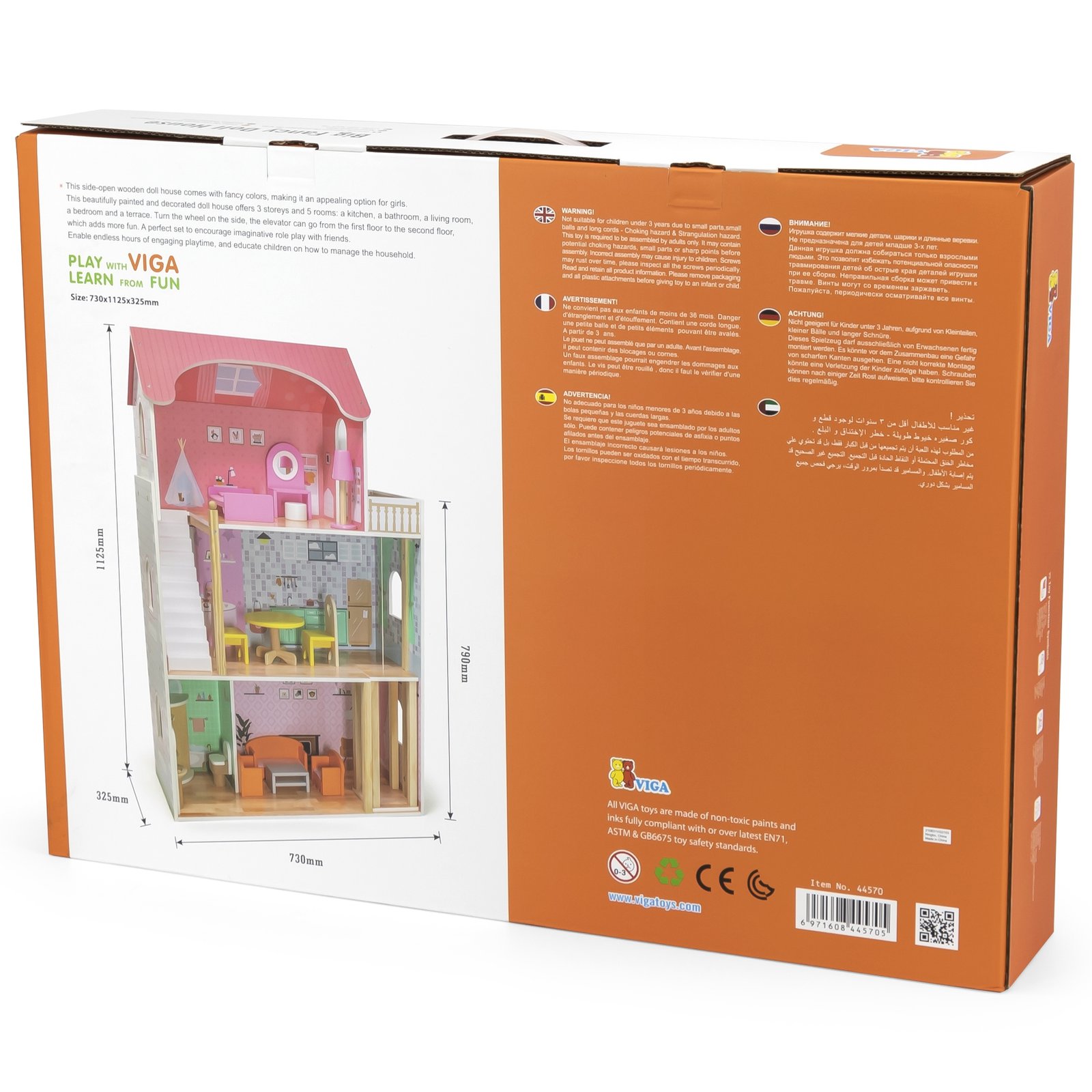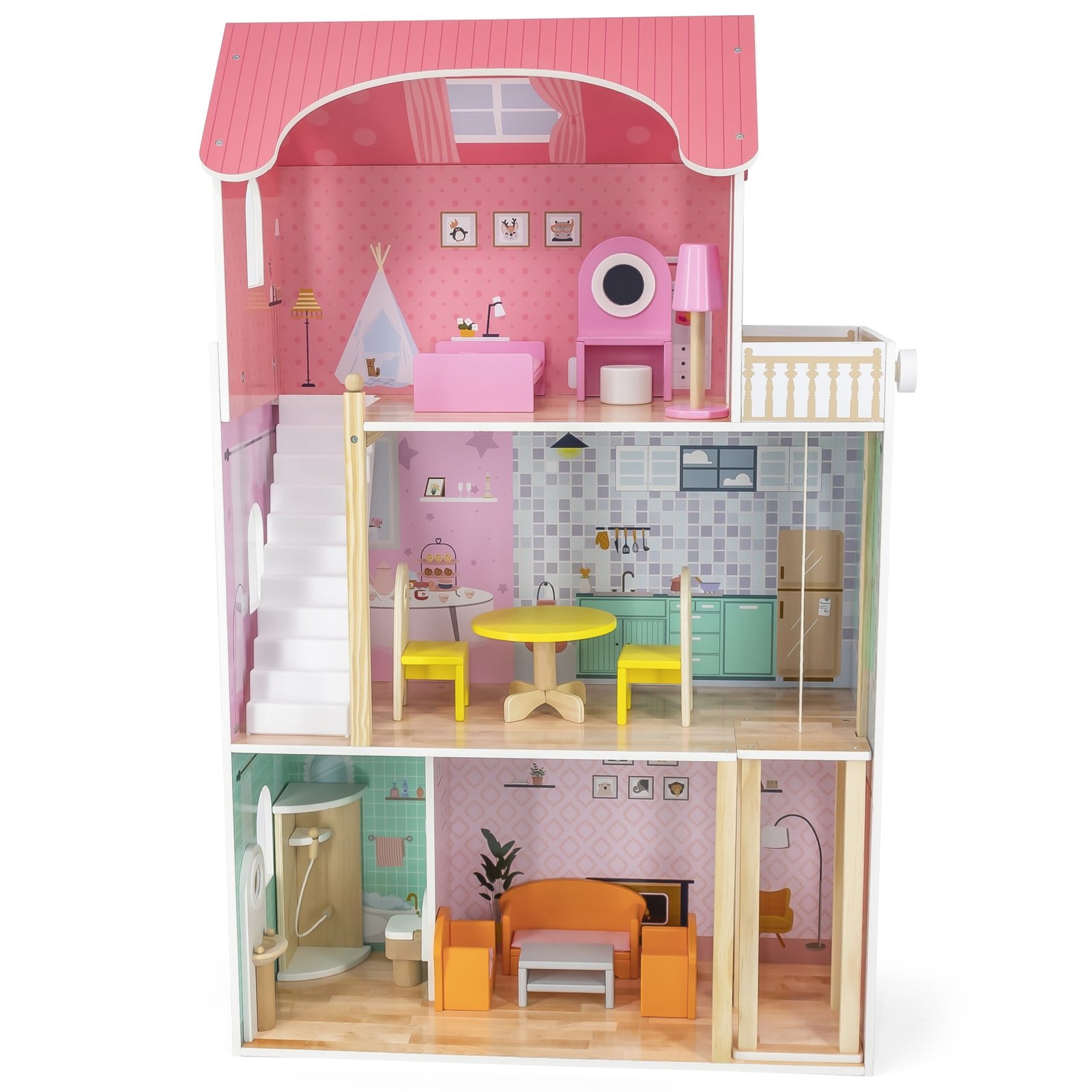 Medinis lėlių namelis, kuriame gausu kambarių, leis mergaitėms įsijausti į įvairius vaidmenis su savo lėlytėmis, figūrėlėmis ar pliušiniais žaislais. Savybės:
