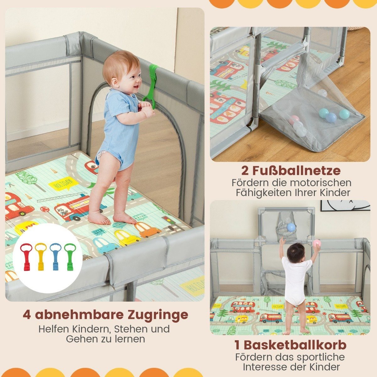 Suteikite savo mažyliui saugią ir smagią žaidimų erdvę su šiuo dideliu, sulankstomu vaikišku aptvaru. Jis sukurtas taip, kad vaikai turėtų pakankamai vietos judėti, žaisti ir tyrinėti, užtikrinant tėvų ramybę.