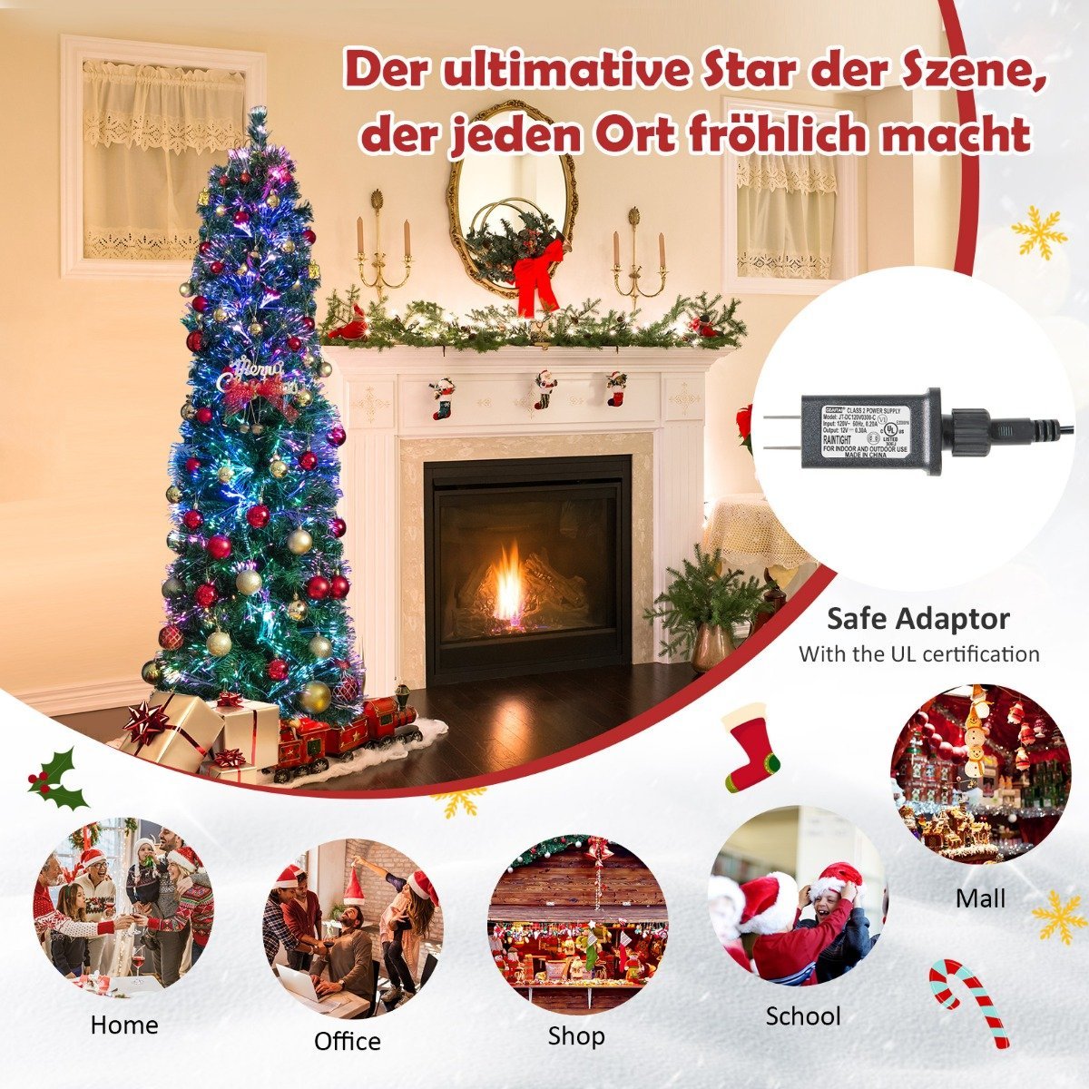 Sukurkite magišką šventinę atmosferą su šia 180 cm aukščio dirbtine Kalėdų egle, kuri stebina integruotomis optinio pluošto (fiber optic) šviesomis. Ši eglė – puikus pasirinkimas tiems, kurie nori mėgautis Kalėdų dvasia be didesnių pastangų.