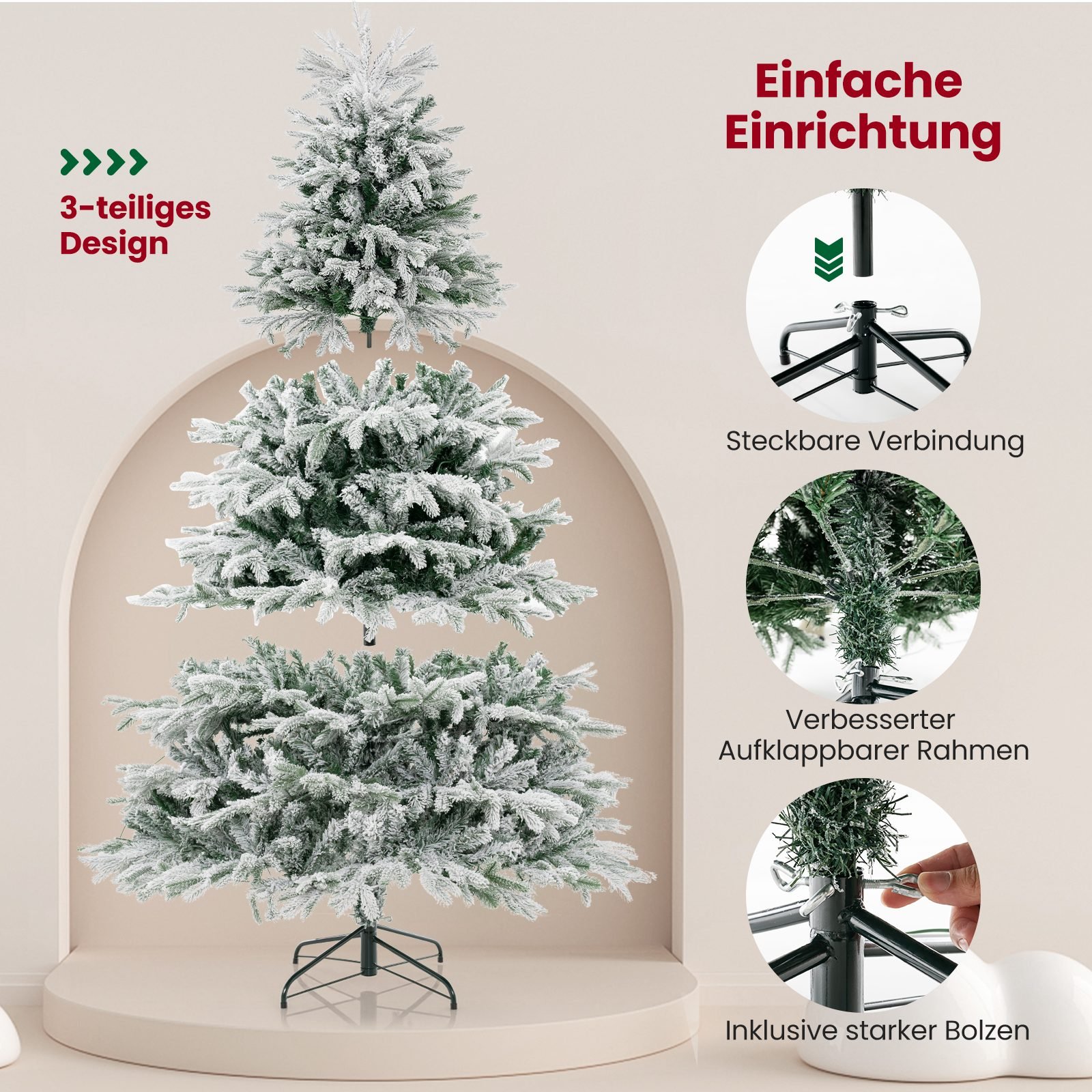 - Prabangus ir tankus šakų dizainas su dirbtiniu sniegu.