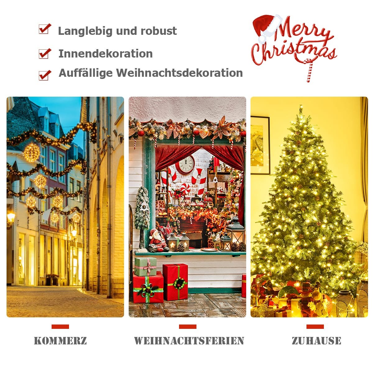Ši elegantiška dirbtinė Kalėdų eglutė su integruota LED girlianda akimirksniu sukurs šventinę atmosferą bet kurioje erdvėje. Pamirškite nukritusius spyglius ir mėgaukitės patogumu – eglutė tarnaus ilgus metus, puikiai atrodydama ir nereikalaudama ypatingos priežiūros. Ji puikiai tinka tiek namams, tiek biurui ar komercinėms patalpoms.