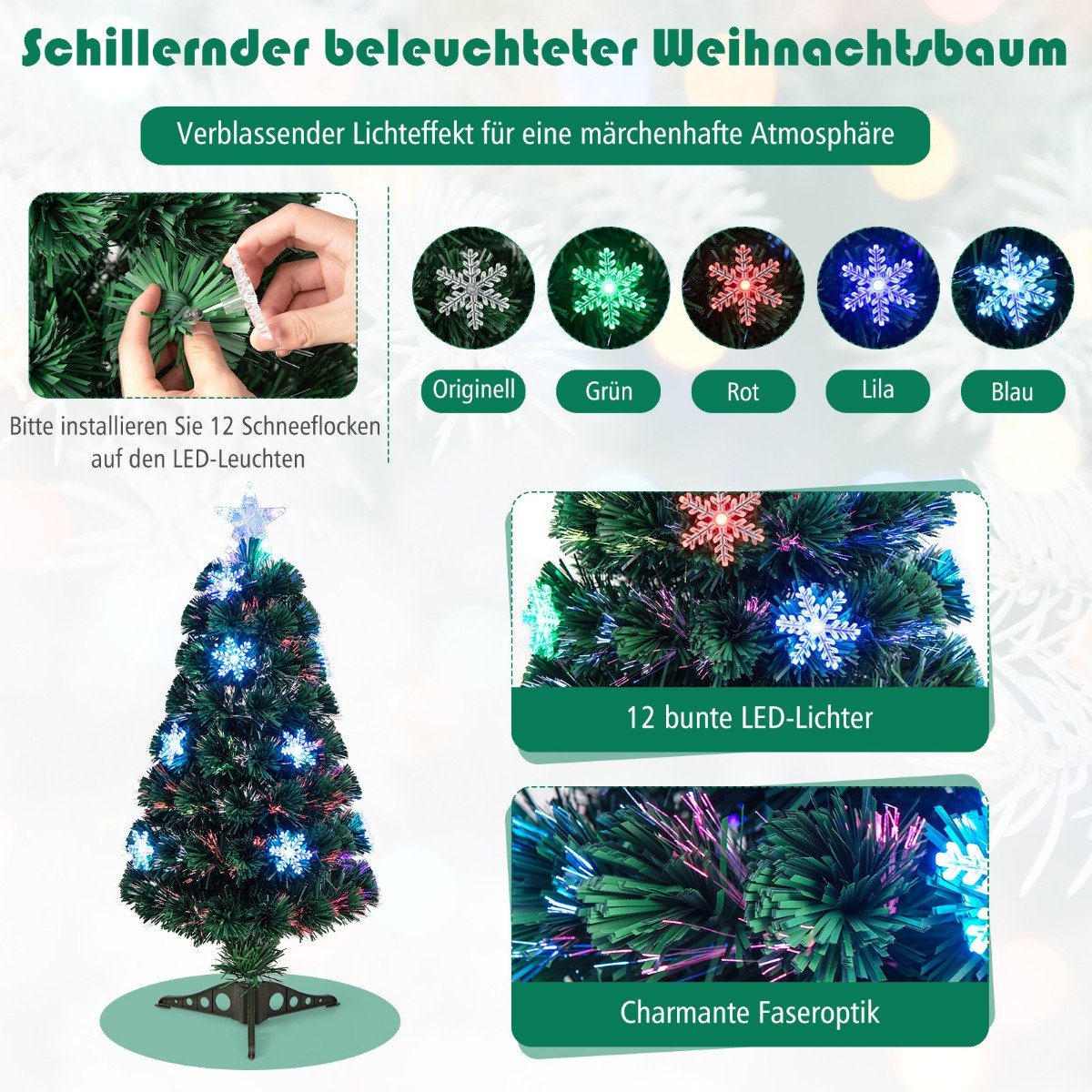 Dirbtinė Kalėdų eglutė su LED apšvietimu ir šviesolaidžiu (Žalia)