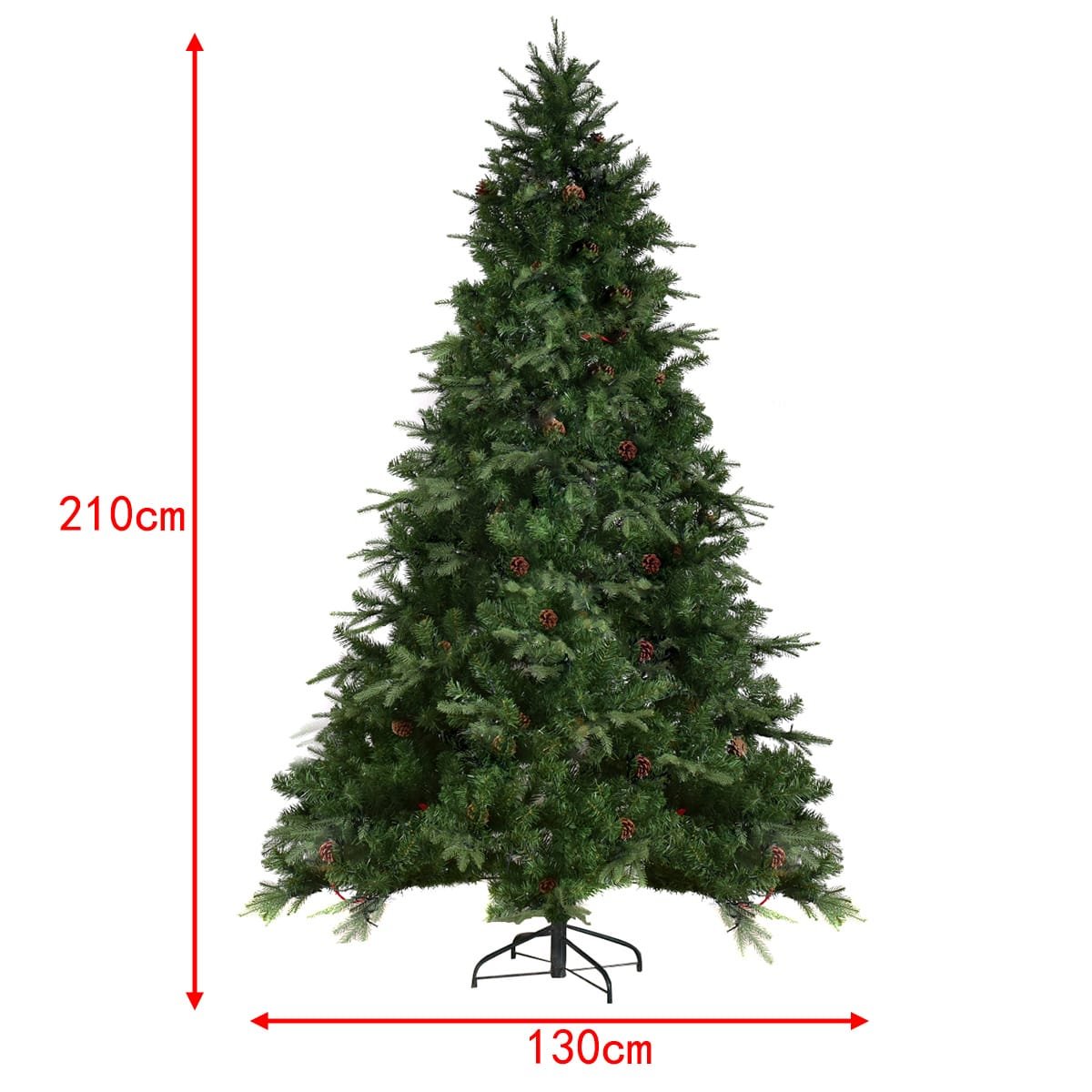 - 210 cm: 925 šakelės, 460 LED, 61 kankorėžis, 50 cm