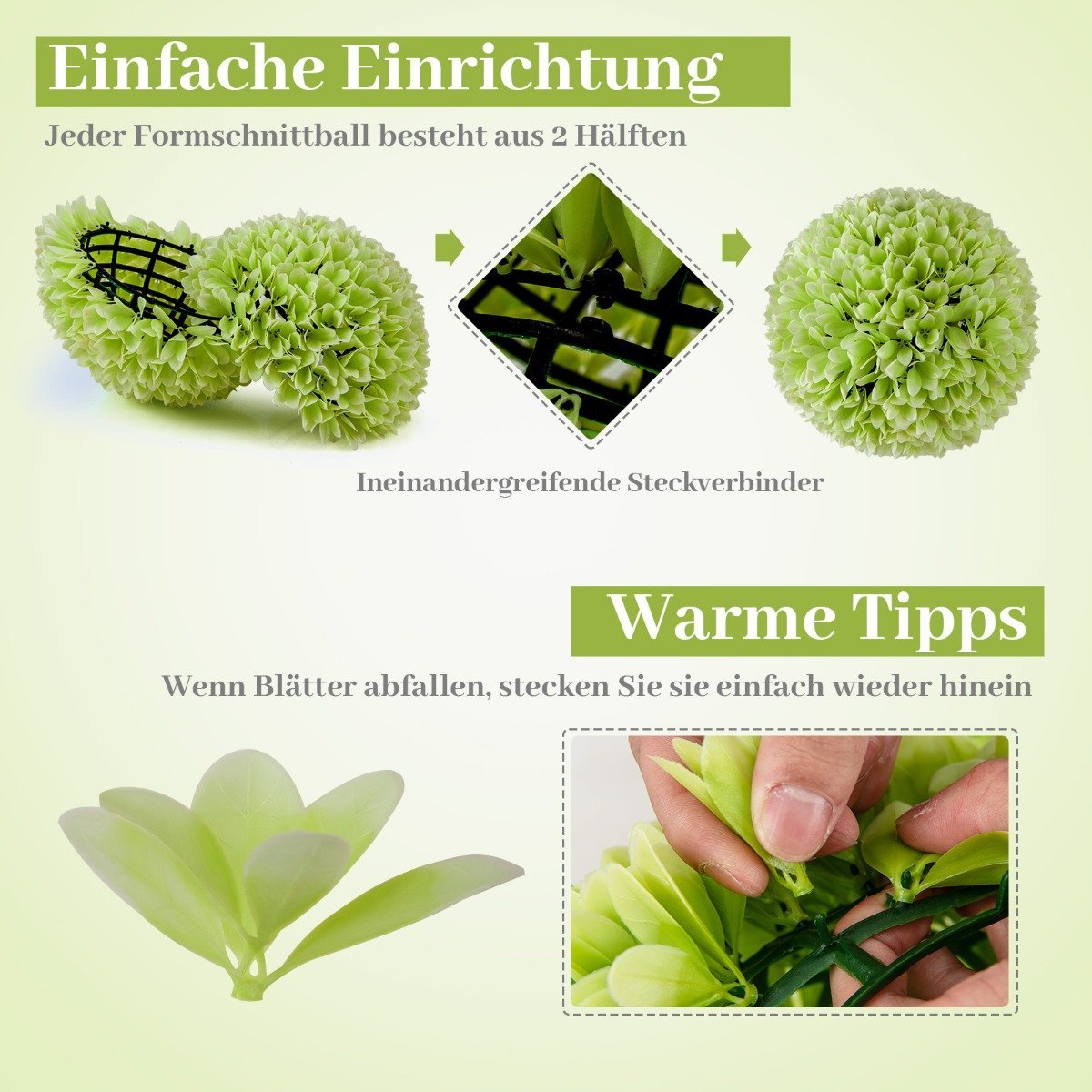 - 2 x dirbtiniai buksmedžio rutuliai
