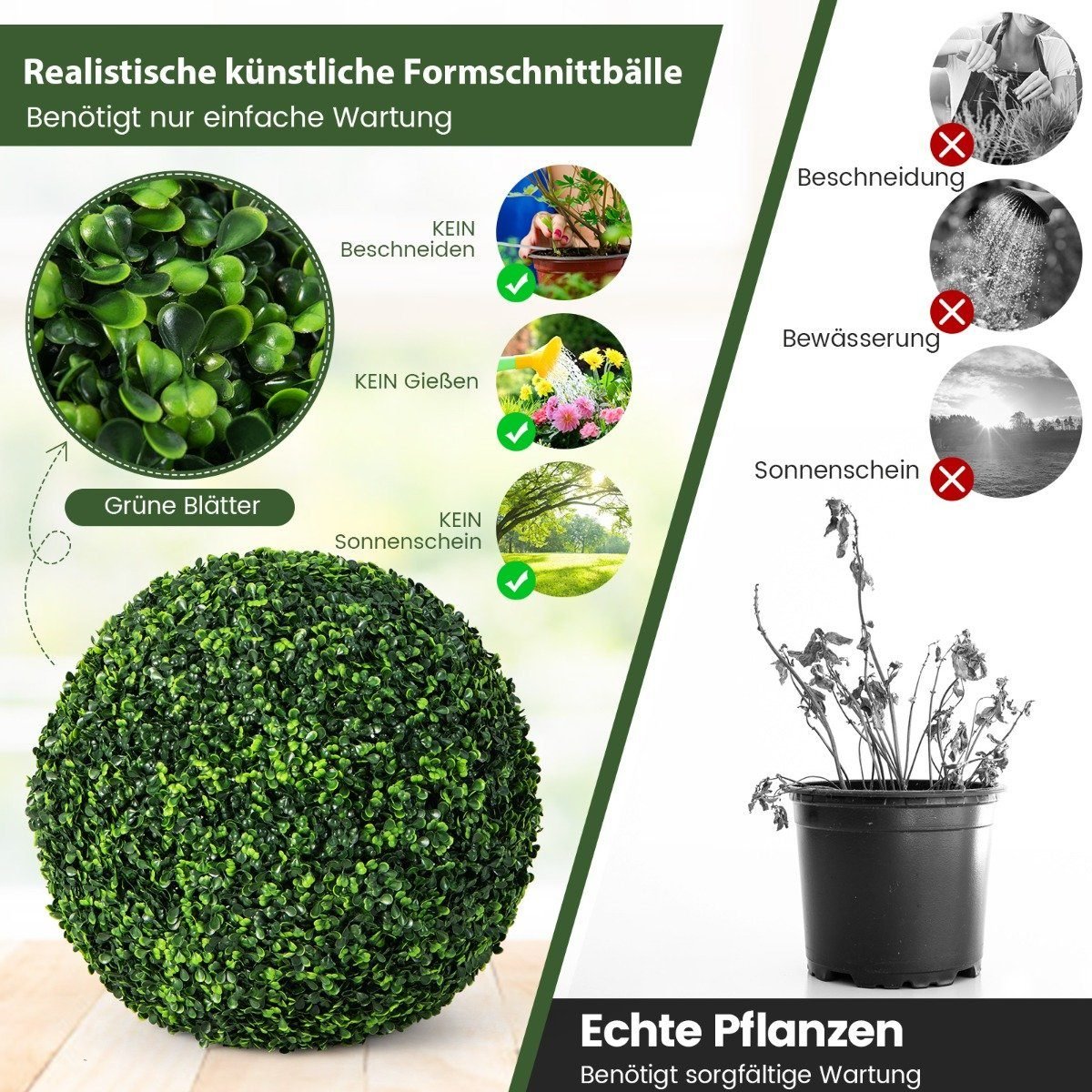- 2 x Dirbtiniai buksmedžio rutuliai