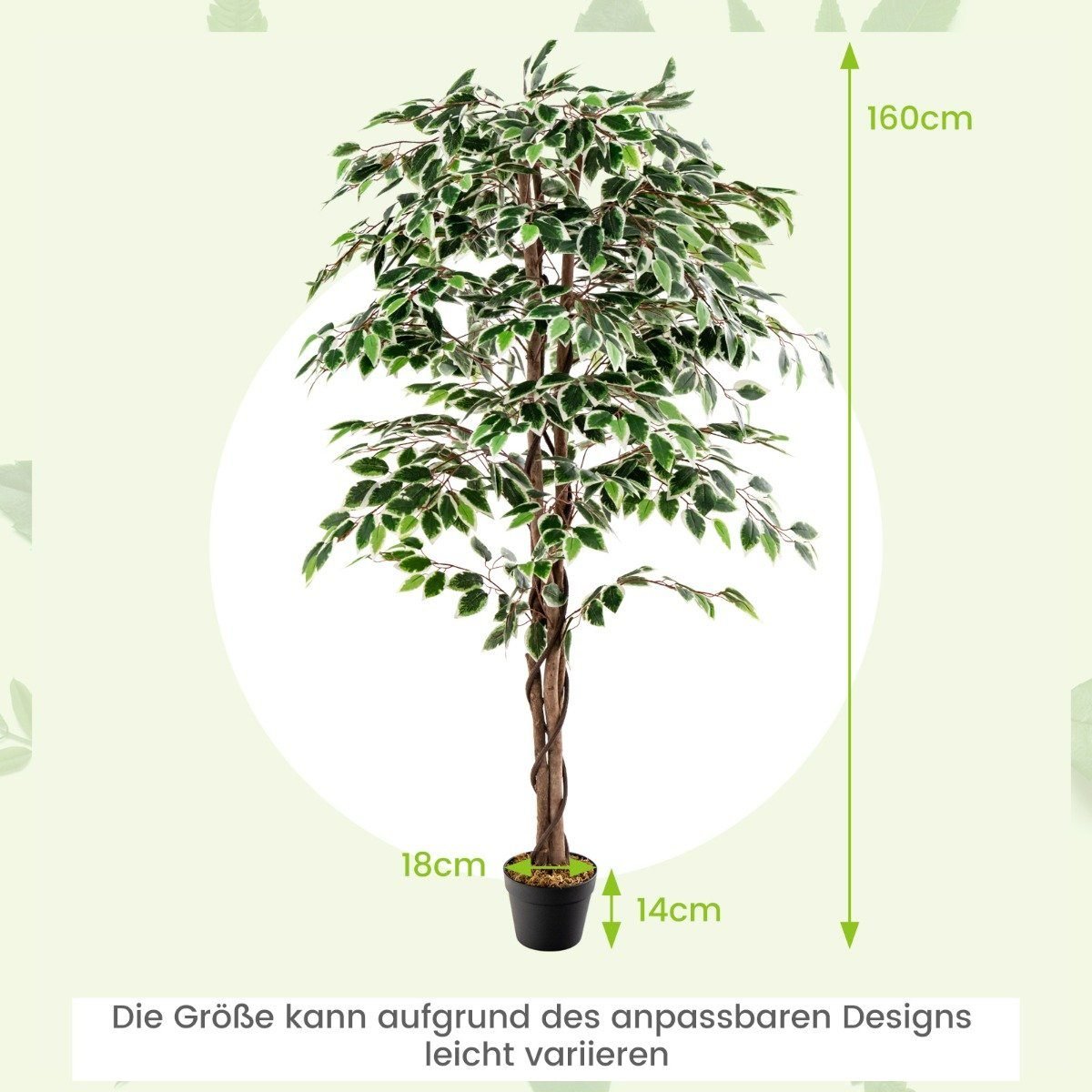 Dirbtinis fikusas 160 cm su 1008 lapeliais ir medžio kamienu (Žalia)
