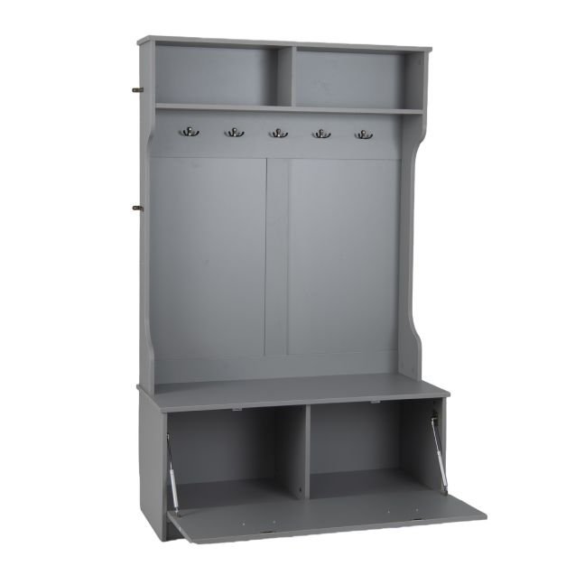 Drabužių kabykla su suoliuku ir penkiais dvigubais kabliukais (Pilka)
