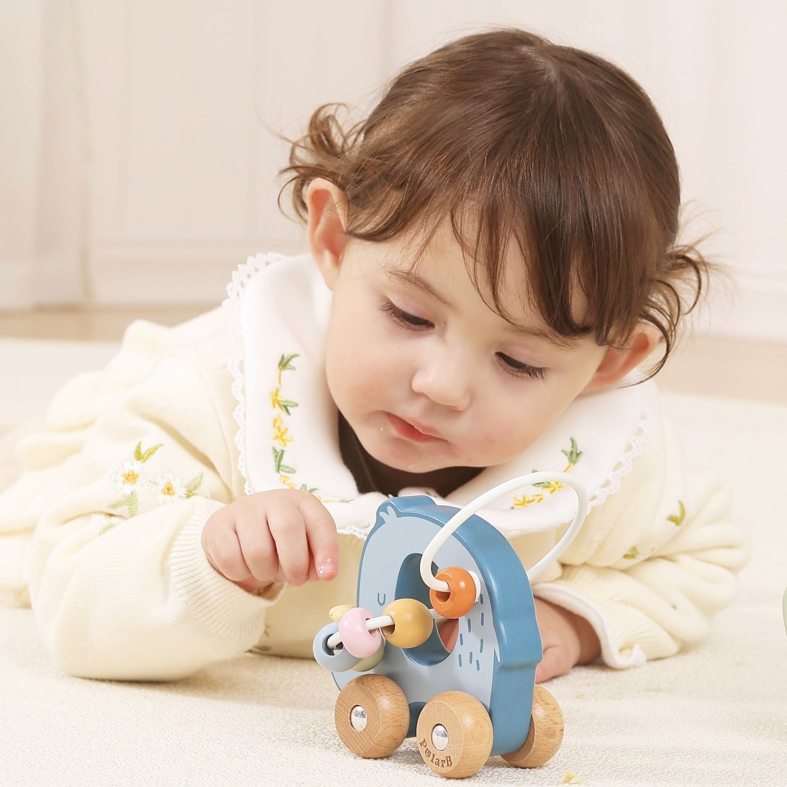 Dramblio formos karoliukų labirintas – puikus pirmasis lavinamasis žaislas mažyliams nuo 12 mėnesių amžiaus. Šis žaislas apjungia karoliukų labirinto ir stumiamo žaislo funkcijas, suteikdamas dvigubą žaidimo džiaugsmą. Mažylis gali stumdyti spalvingus karoliukus spiraliniais takeliais arba ridenti žaislą grindimis, lavindamas smulkiąją ir stambiąją motoriką bei akių ir rankų koordinaciją. Pagamintas iš natūralios buko medienos ir turintis užapvalintus kraštus, žaislas užtikrina saugumą žaidimo metu. Tai ilgaamžis, estetiškas ir lavinamasis žaislas, puikiai tinkantis mažiesiems atradėjams.