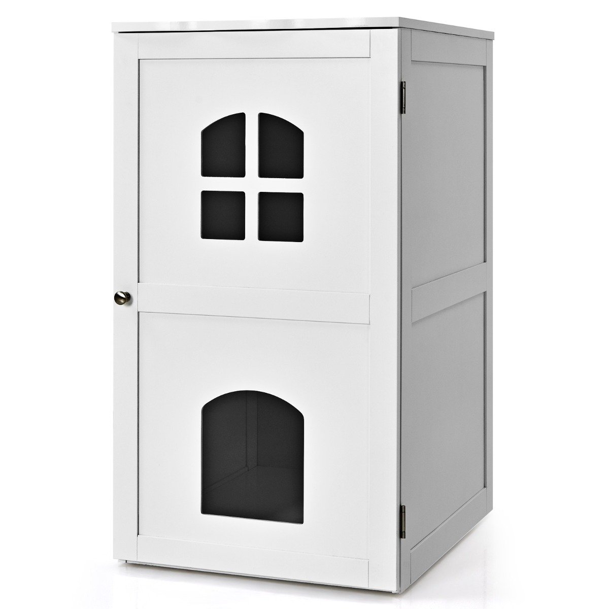 Dviaukštis kačių namelis su magnetinėmis durimis (Balta)