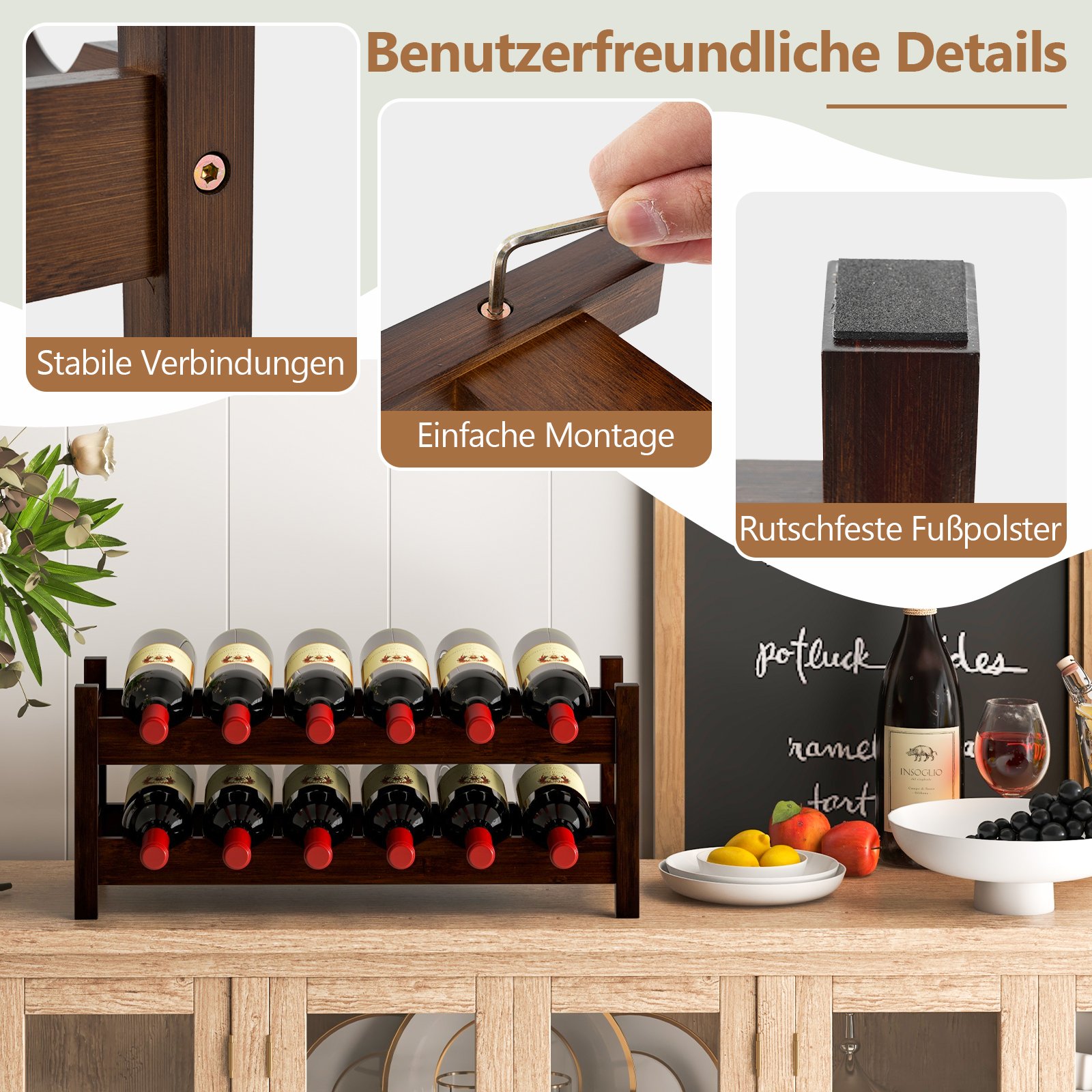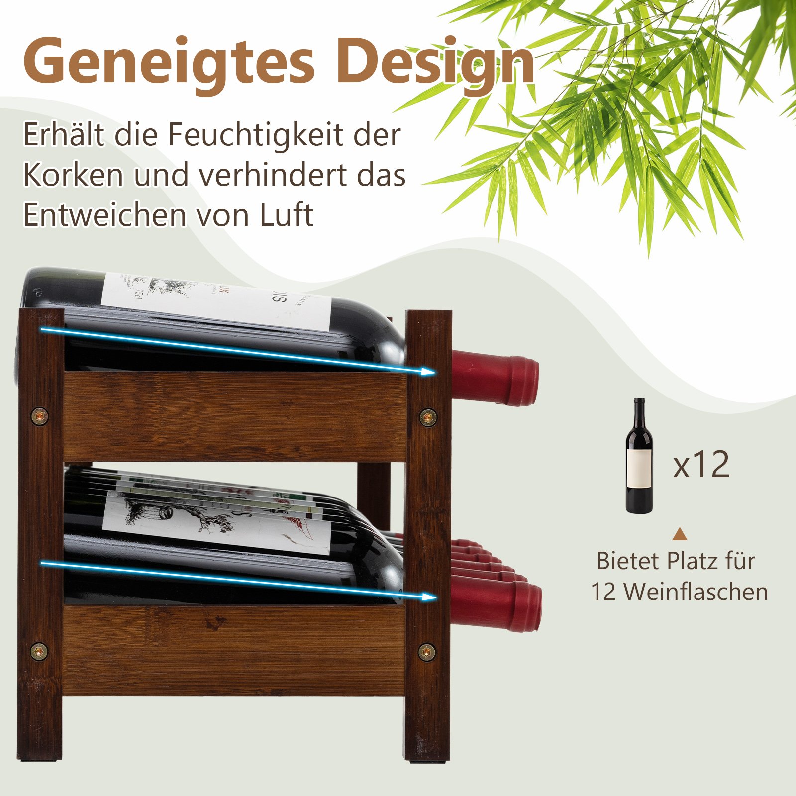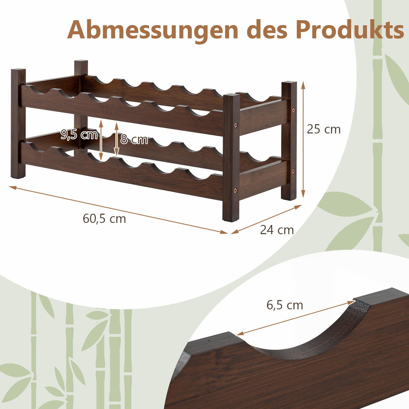 Dviejų aukštų bambuko vyno stovas 12 butelių (Ruda)