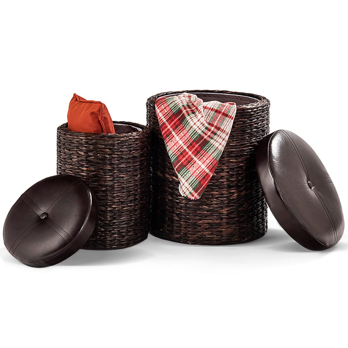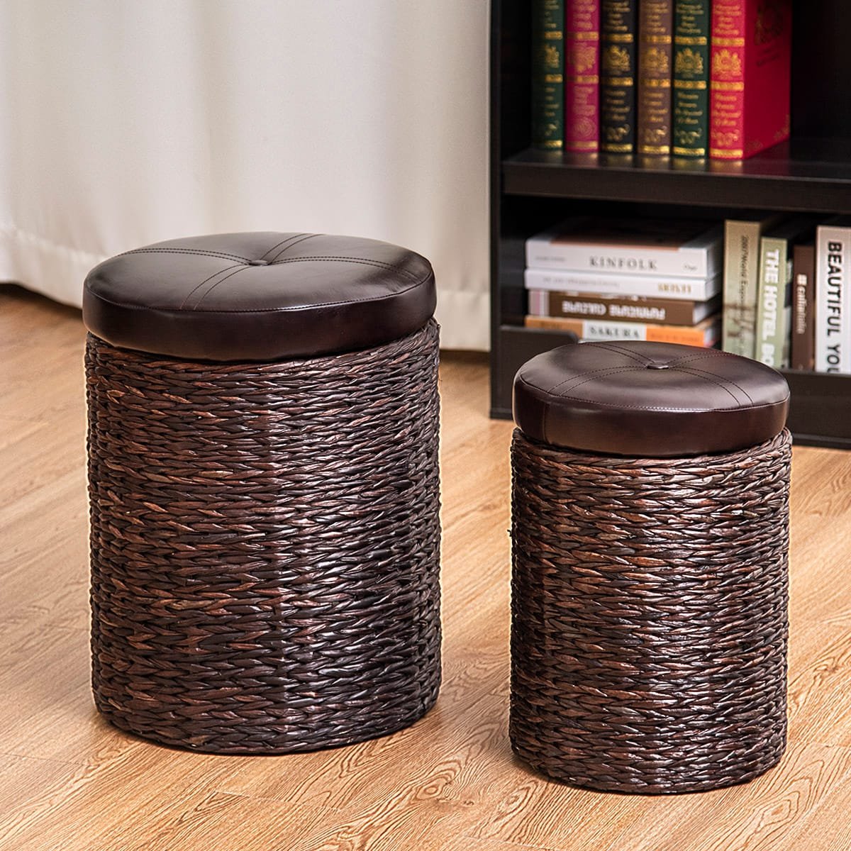 Dviejų dalių sėdimieji pufai su daiktadėže (Ruda)