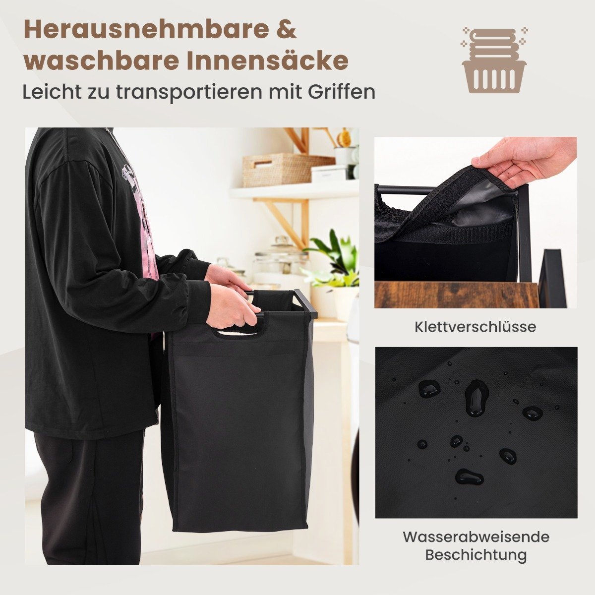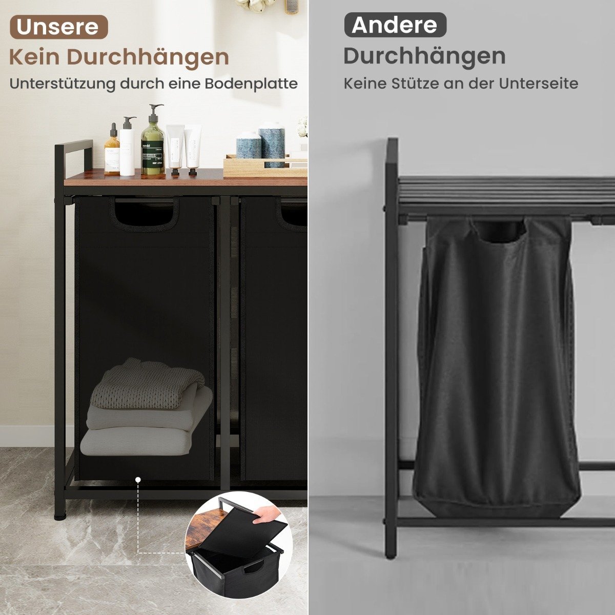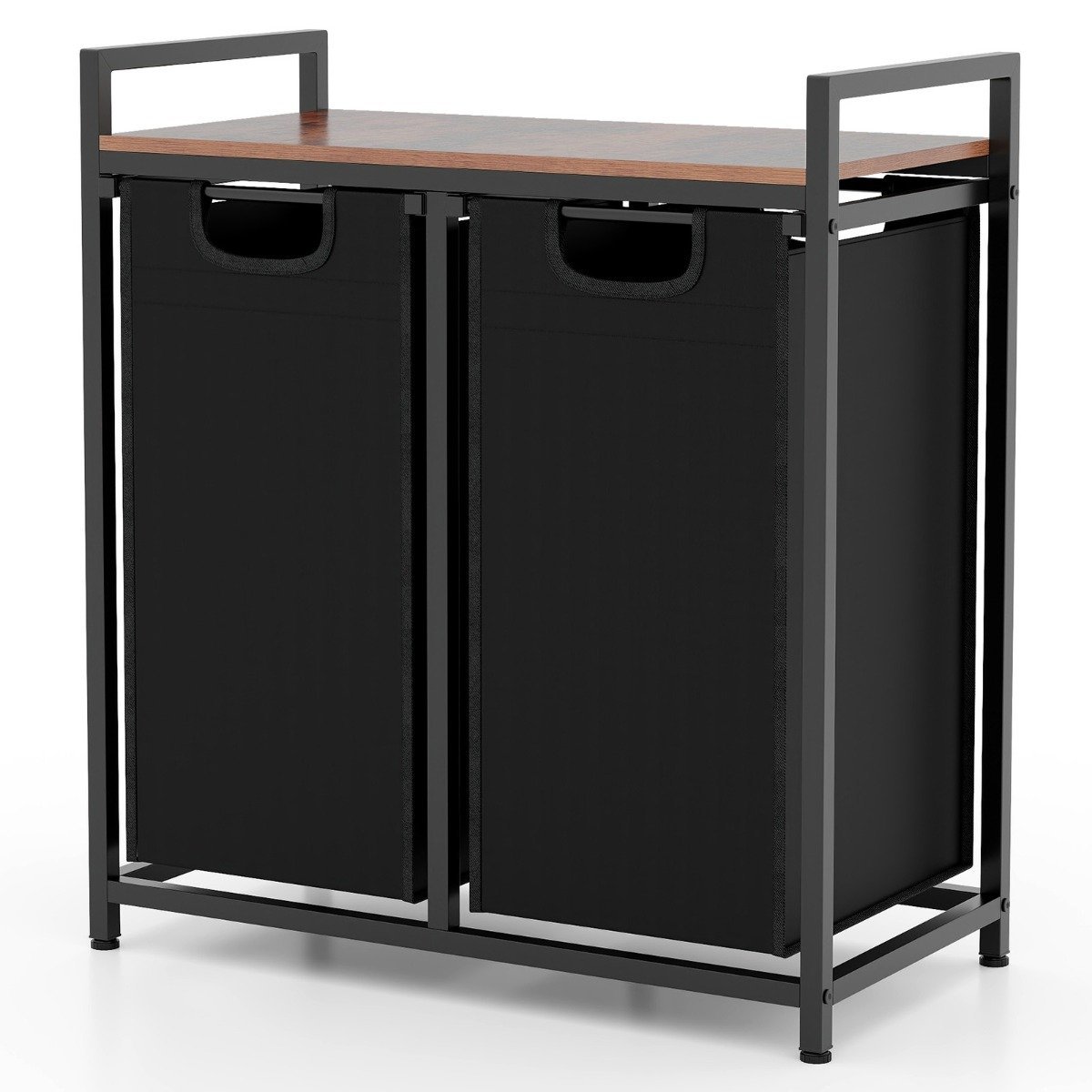 Dvigubas skalbinių krepšys su lentyna ir išimamos talpyklos (Juoda)