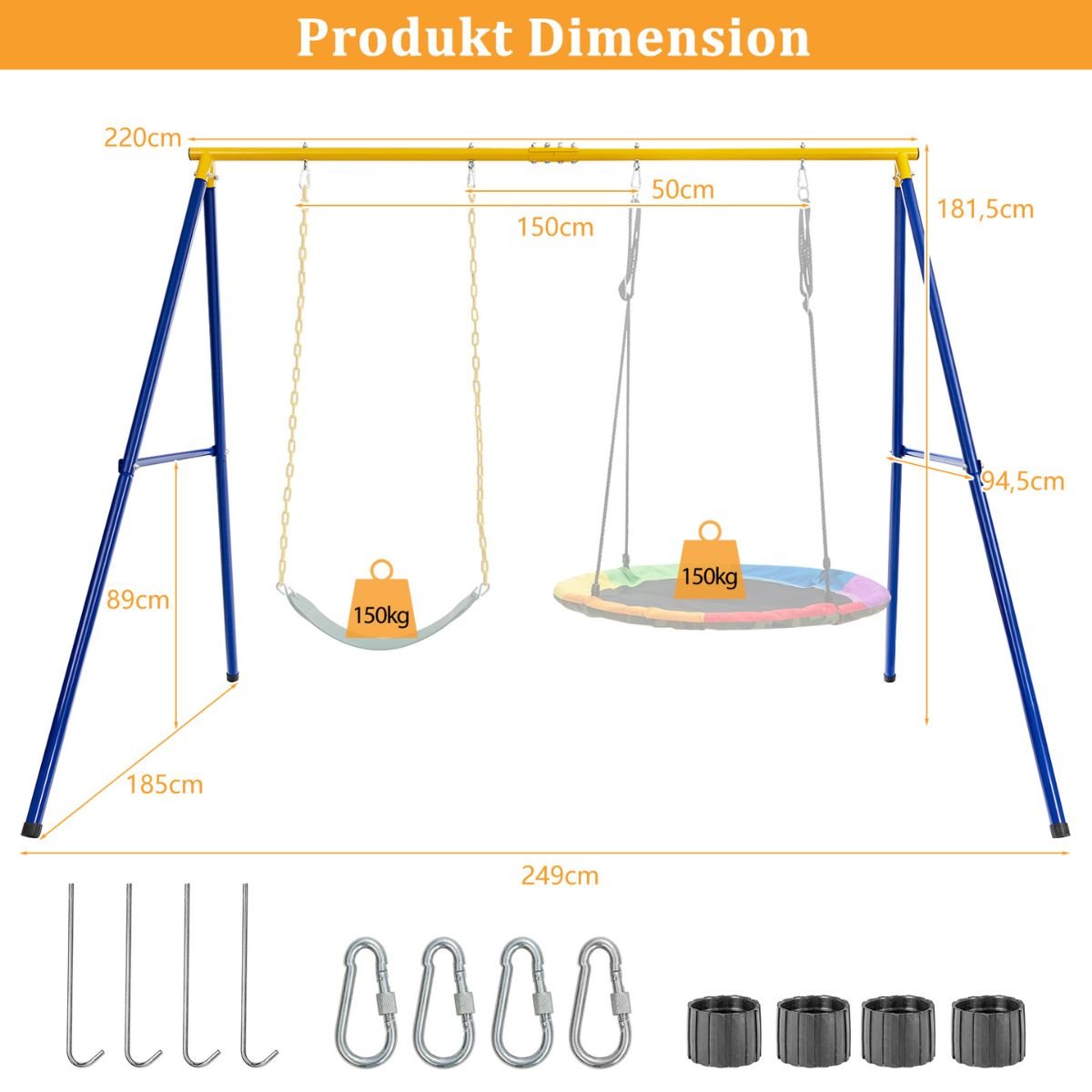 Dvigubas sūpynių stovas su dviem sūpynėm iki 300 kg apkrova (Spalvotas)