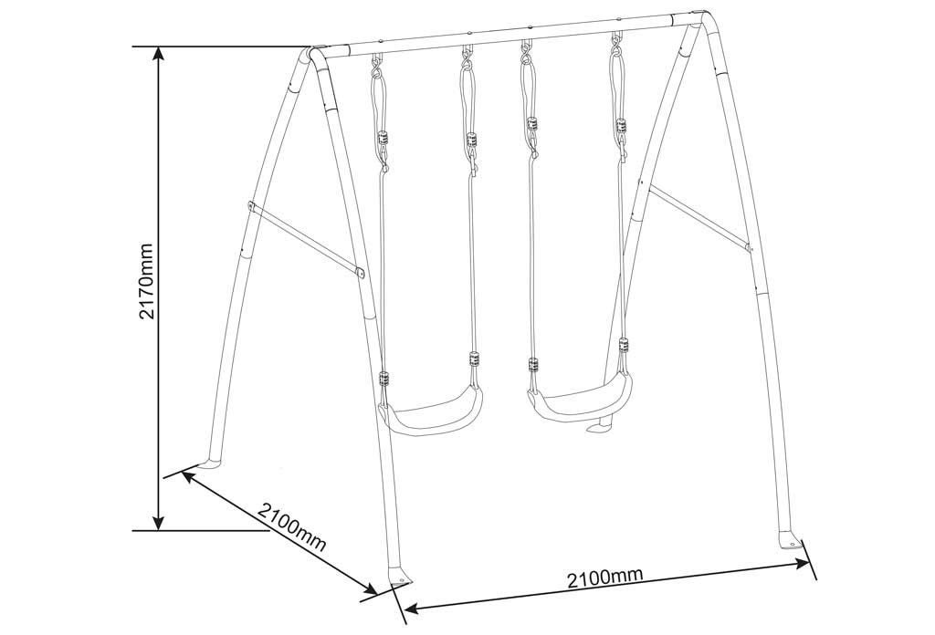 Dvigubos metalinės sūpynės su reguliuojamomis plastikinėmis sėdynėmis