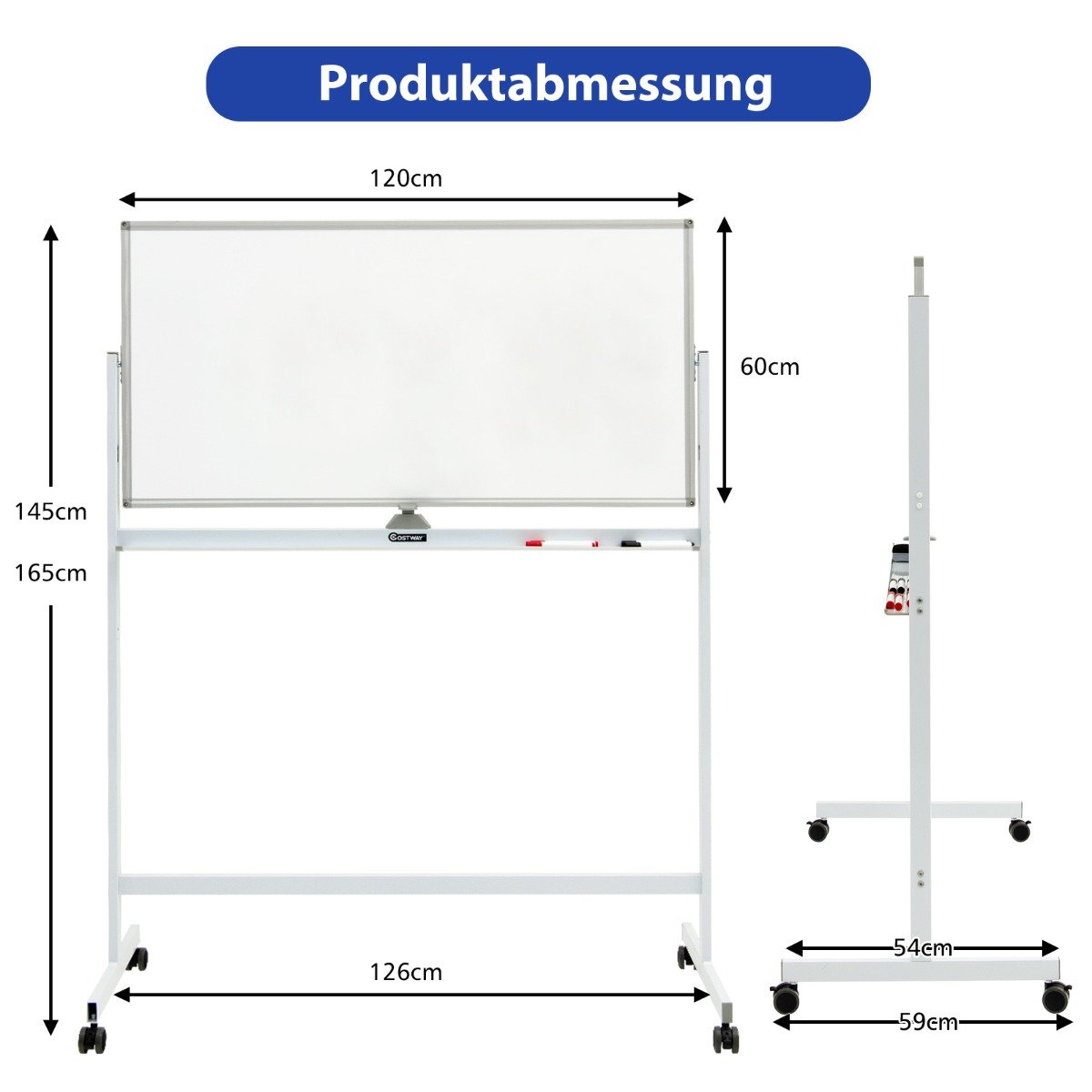 Dvipusė magnetinė mobilioji lenta ant ratukų (Balta)