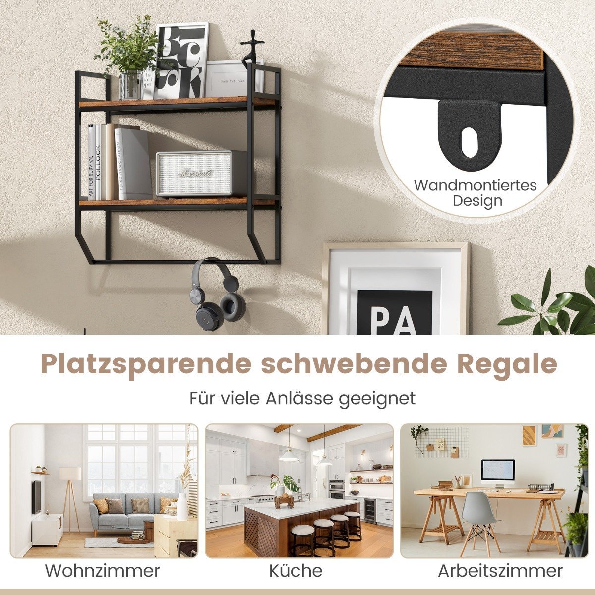 Dvipusė sieninė lentyna su rankšluosčių laikikliu (RUSTIKALBRAUN)