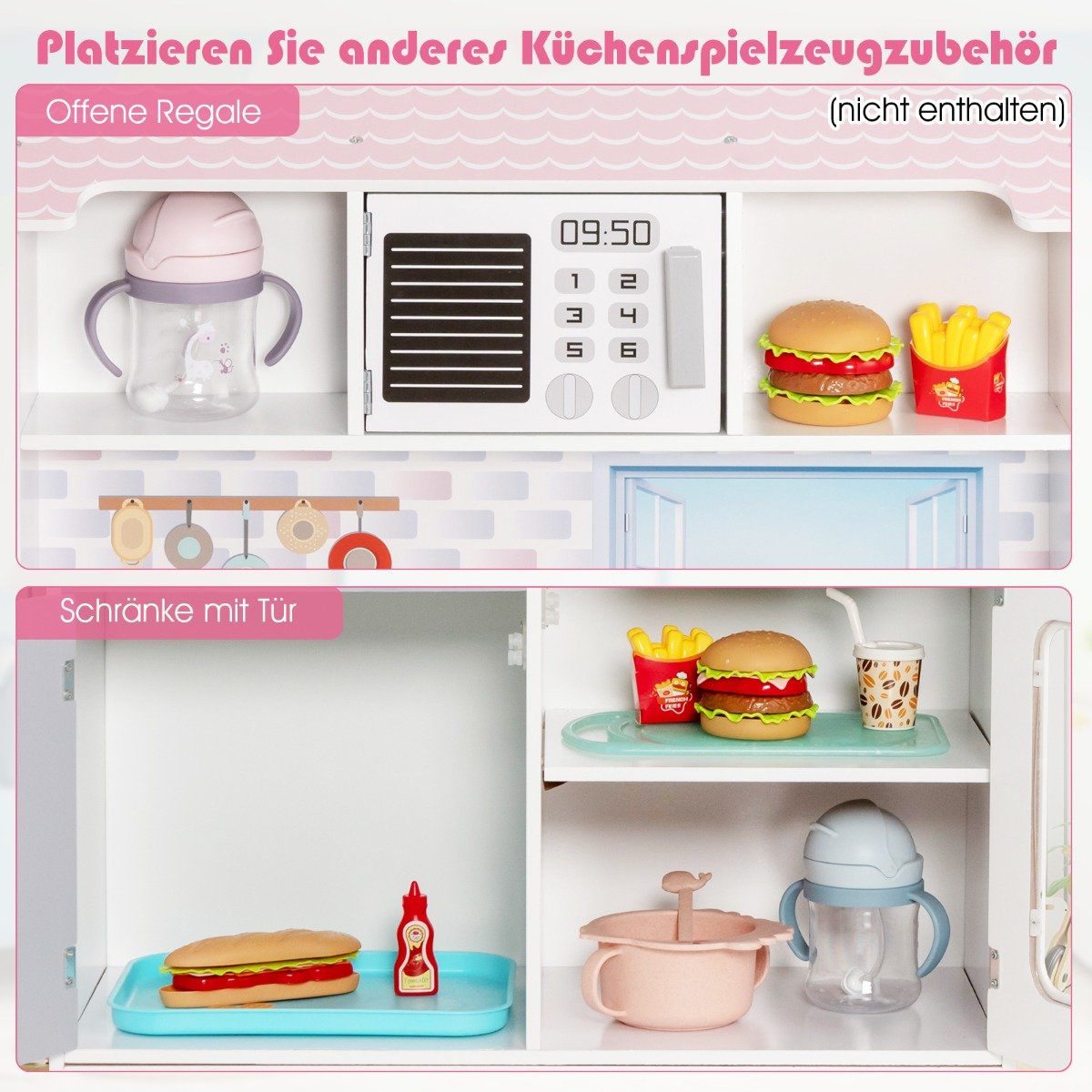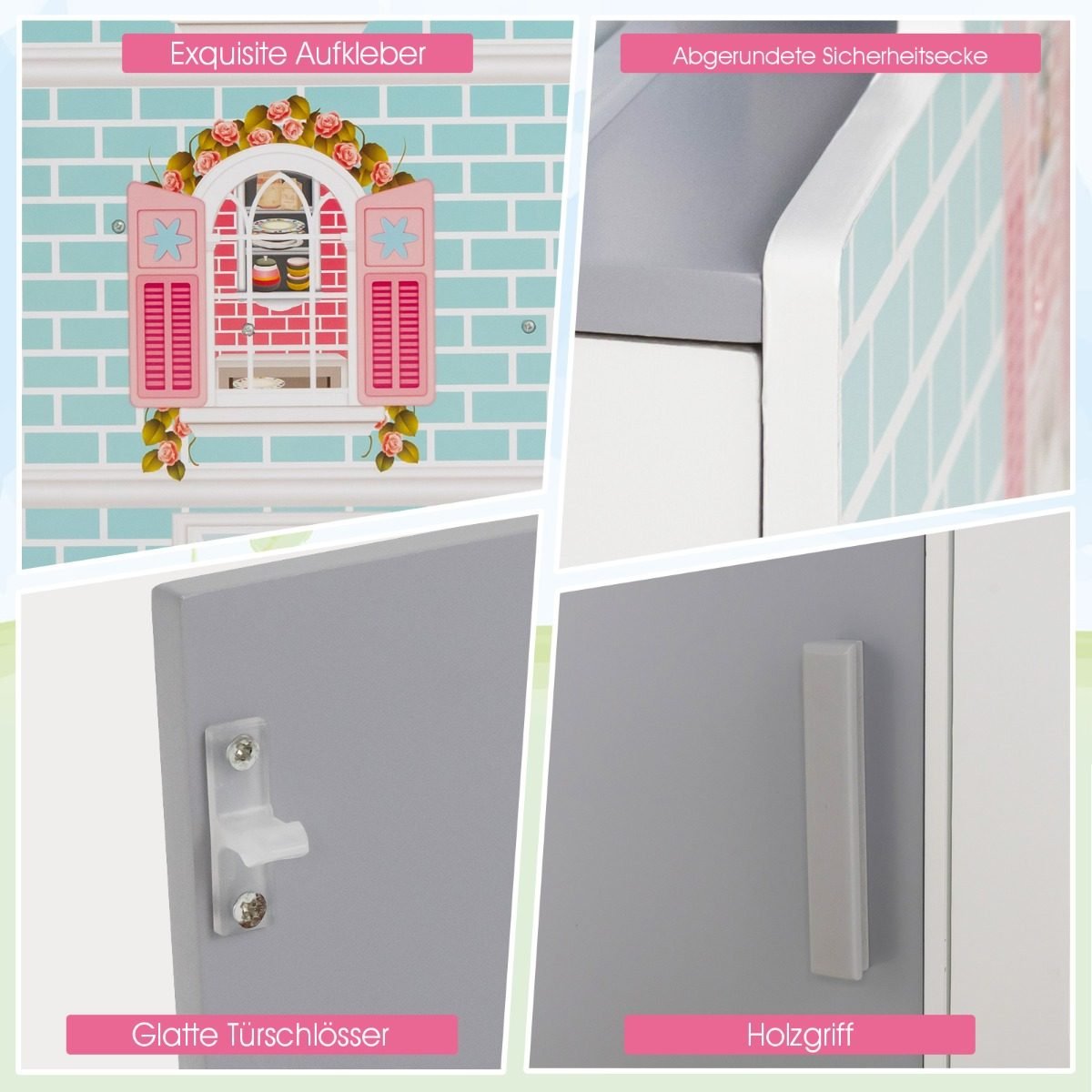 - Dvipusis dizainas: virtuvėlė ir lėlių namelis viename, skatinantys bendrus žaidimus.