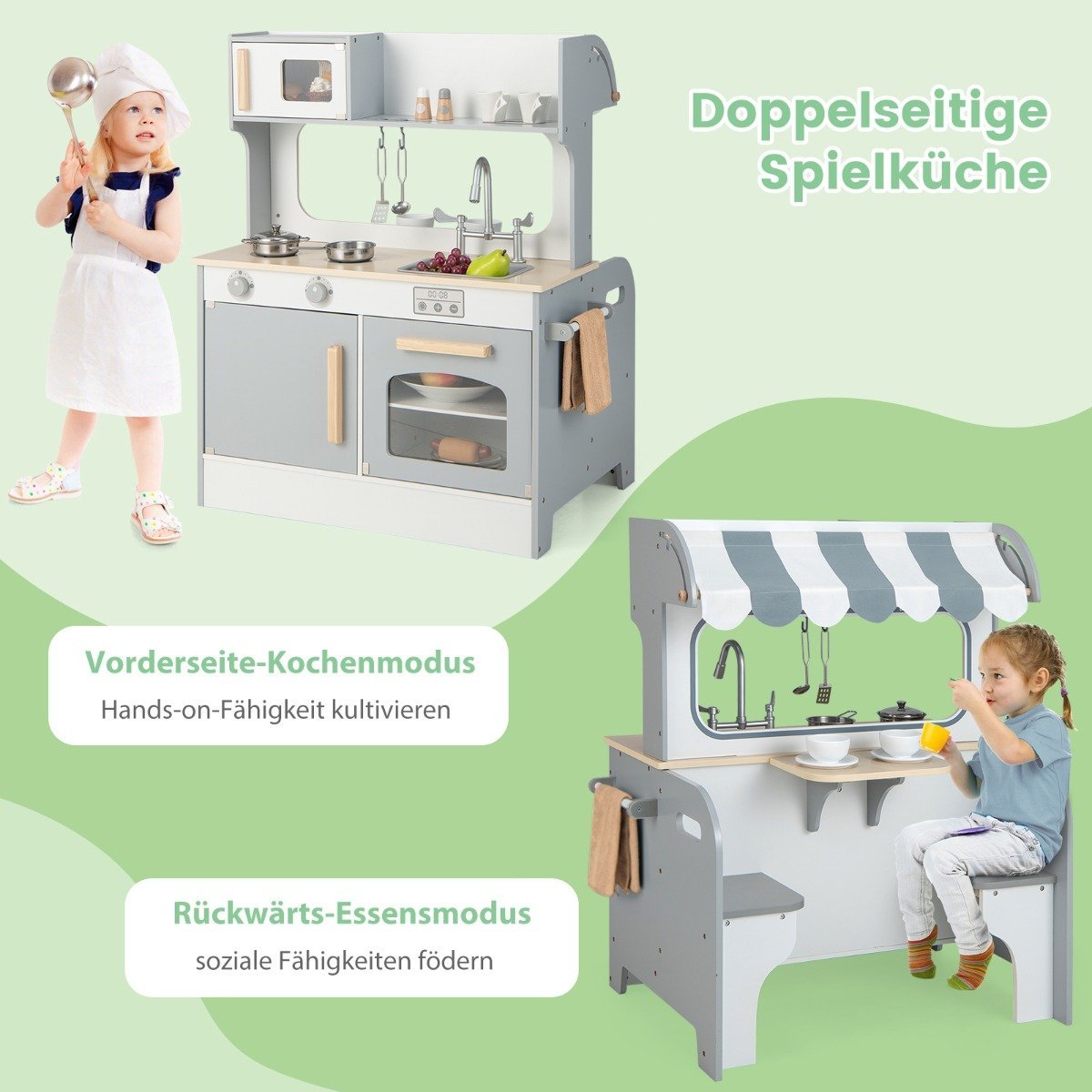 Dvipusė vaikiška virtuvėlė su valgomojo zona (Pilka)