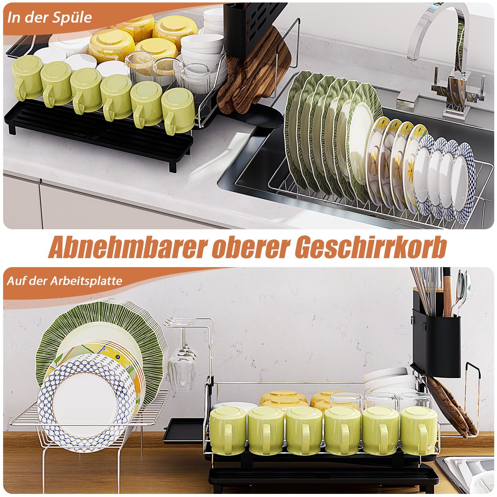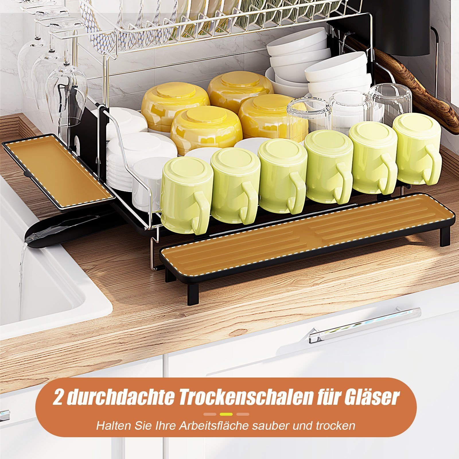 Tvarkingai susidėkite indus su šiuo funkcionaliu dviejų aukštų džiovinimo stoveliu. Sukurtas atsižvelgiant į kasdienius jūsų šeimos poreikius, jis suteikia patogumo ir efektyvumo virtuvėje.