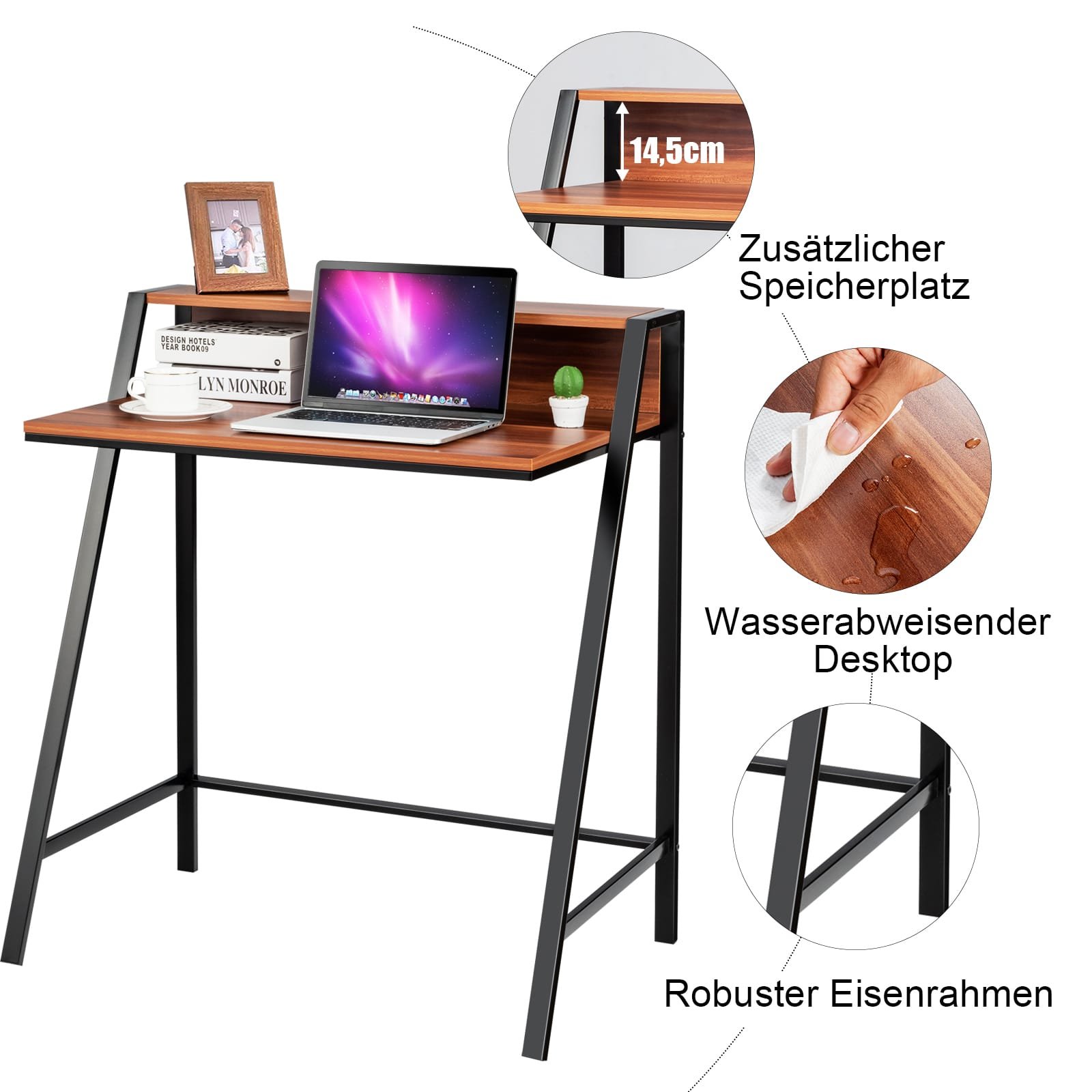 Šis dviejų lygių rašomasis stalas yra puikus pasirinkimas jūsų namų biurui ar darbo erdvei. Jis siūlo ne tik daug vietos darbui, bet ir ergonomišką sprendimą jūsų monitoriui.