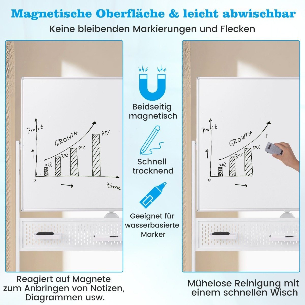 Padidinkite savo produktyvumą su šiuo dvipusiu, mobiliu rašomuoju stovu! Jo didelis 120 x 90 cm rašomasis paviršius suteikia pakankamai erdvės Jūsų idėjoms, užrašams ir pristatymams. Puikiai tinka biurui, klasei ar namams.