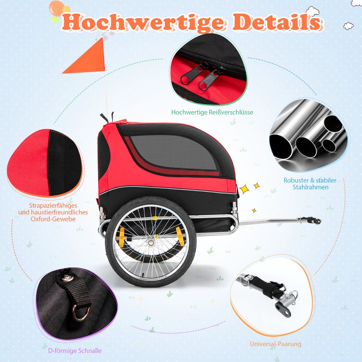 Dviračio priekaba augintiniams iki 40 kg (Raudona)