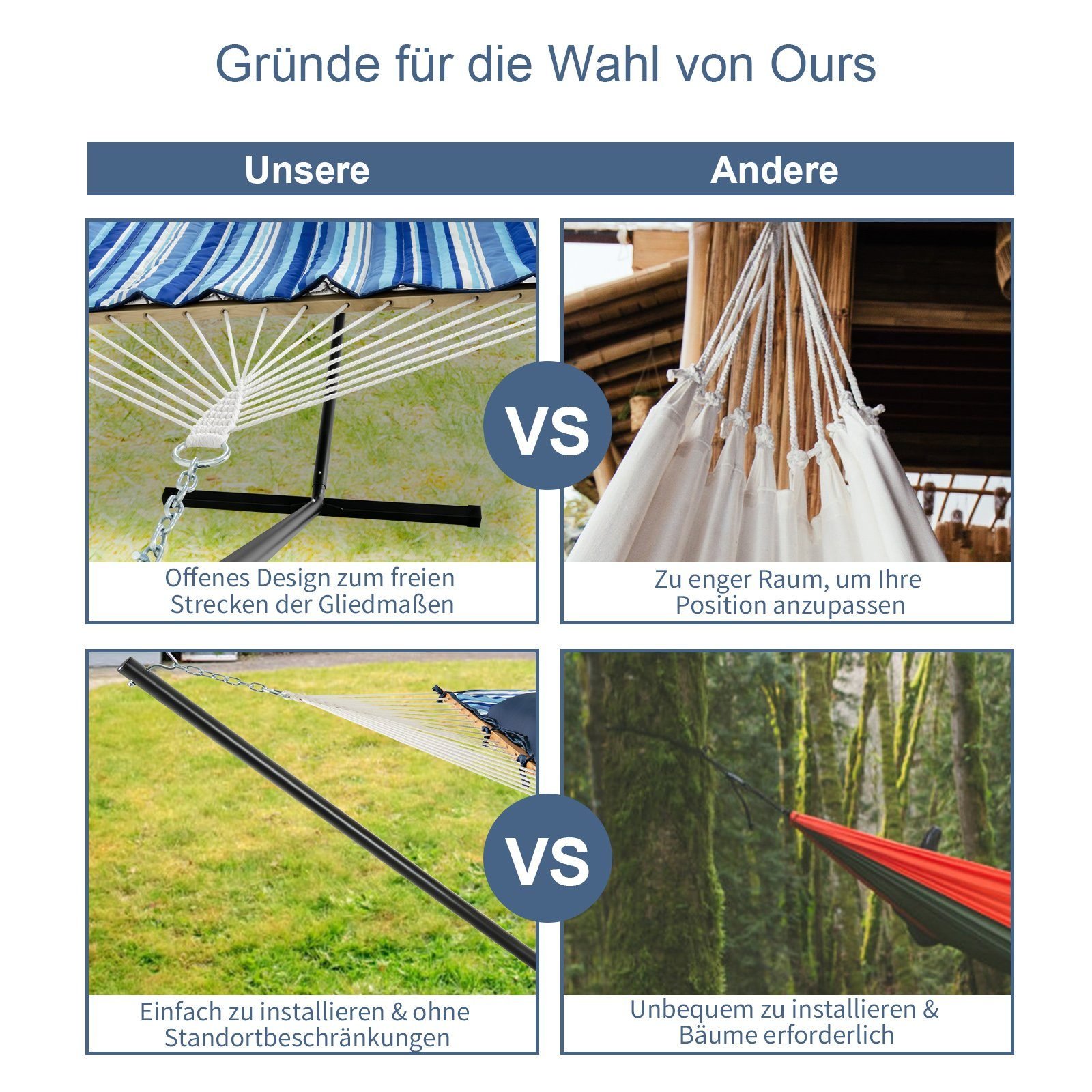 Atraskite nepakartojamą būdą atsipalaiduoti su šiuo stilingu ir patogiu hamako komplektu. Sukurtas atlaikyti iki 150 kg svorio, šis hamakas suteiks jums tą komfortą, kurio tikrai nusipelnėte.