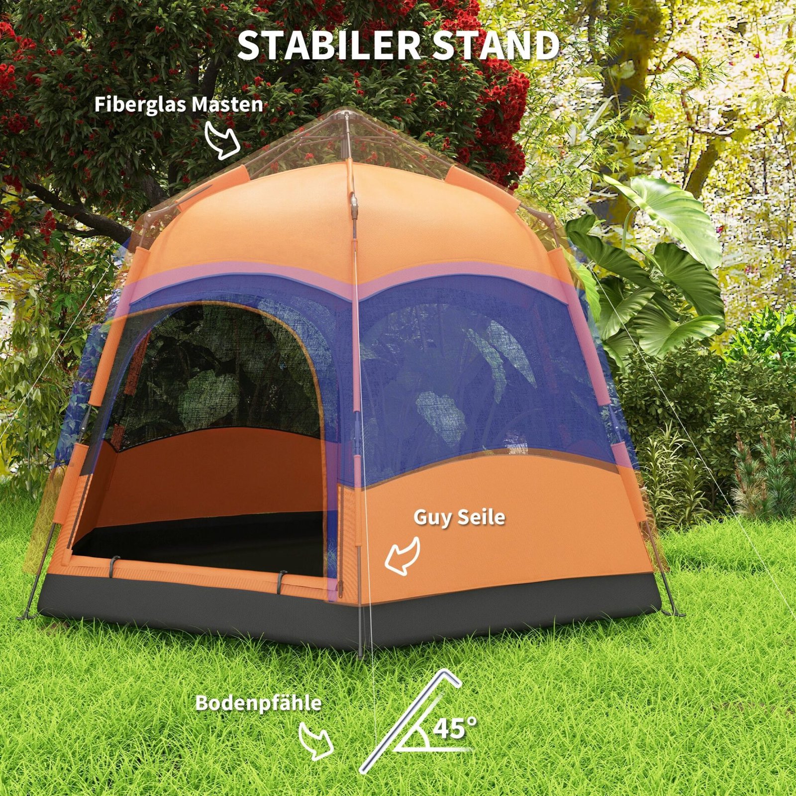 ✔ 12 kuoliukų ir 6 atatampų virvės dideliam stabilumui
