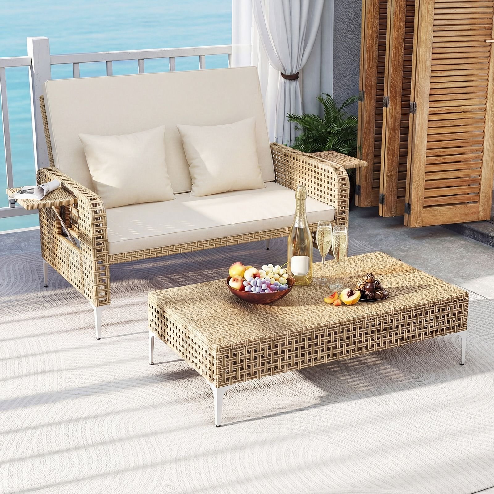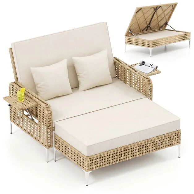 Dvivietė lauko sofa-lova su daiktadėže ir reguliuojamu atlošu (Smėlio)