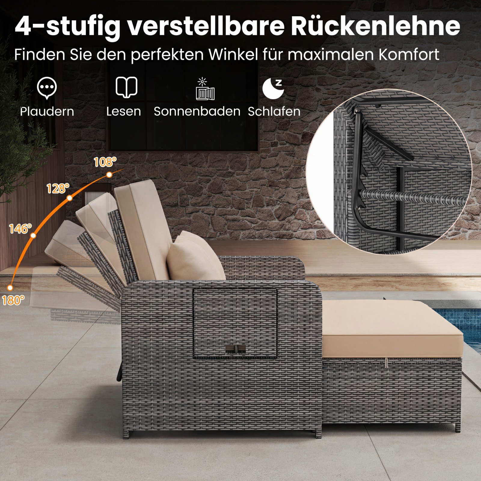 Poliratano lauko sofa su reguliuojama atrama nugarai ir išskleidžiamais staliukais (Pilka)