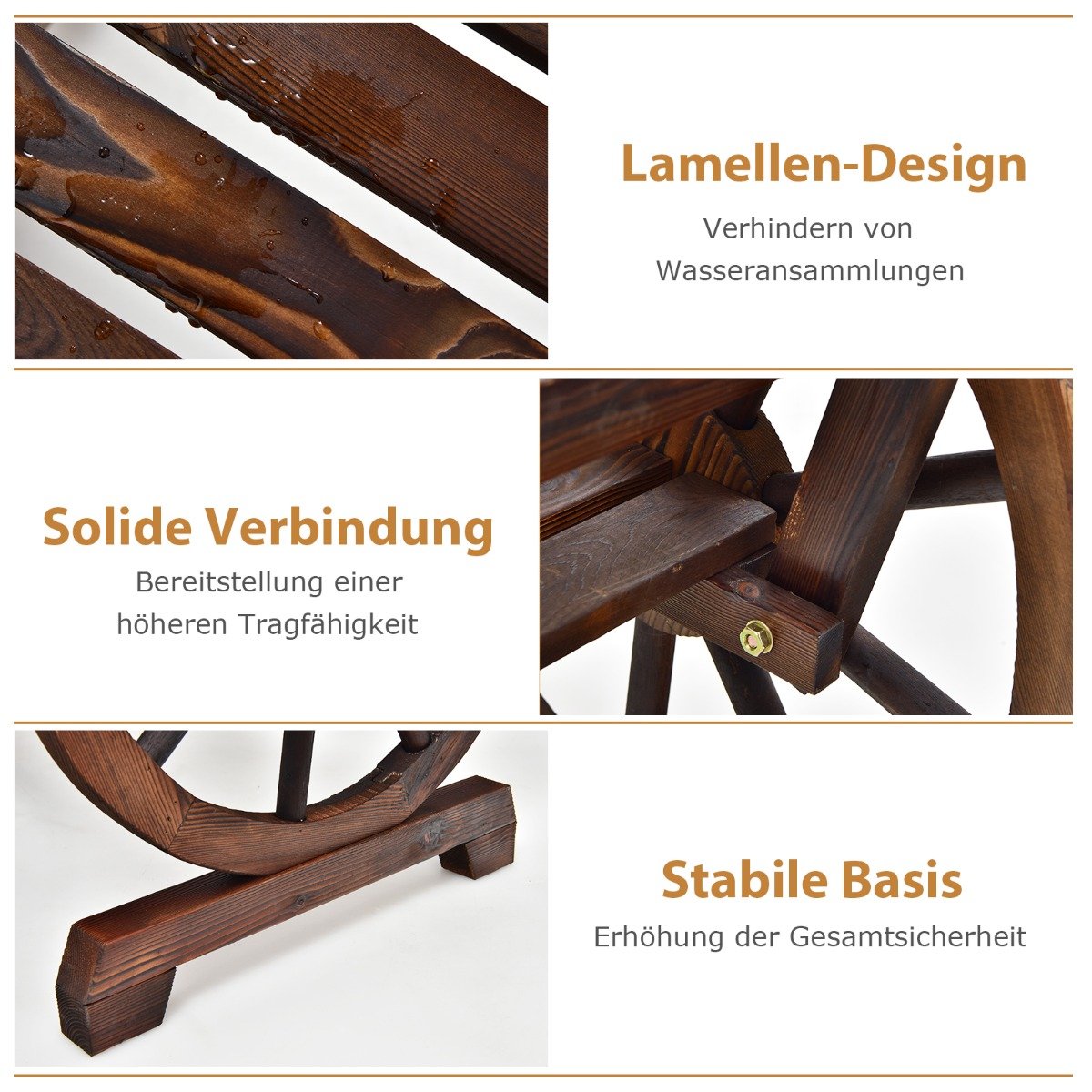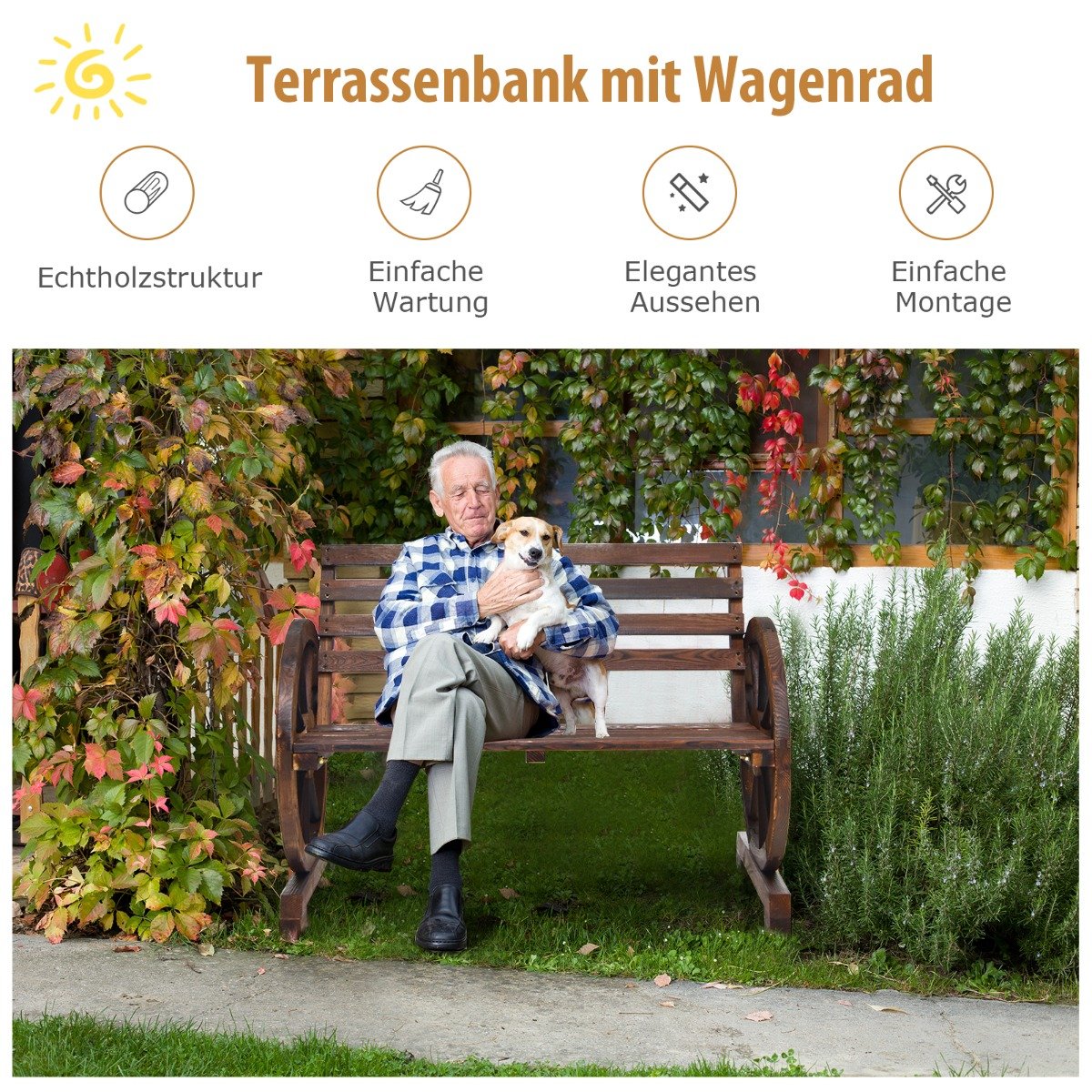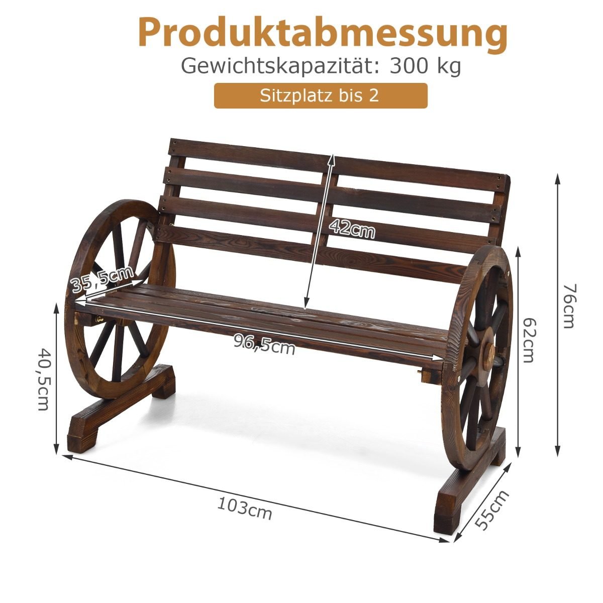 Dvivietis medinis lauko suoliukas su ratų dizaino porankiais (Ruda)