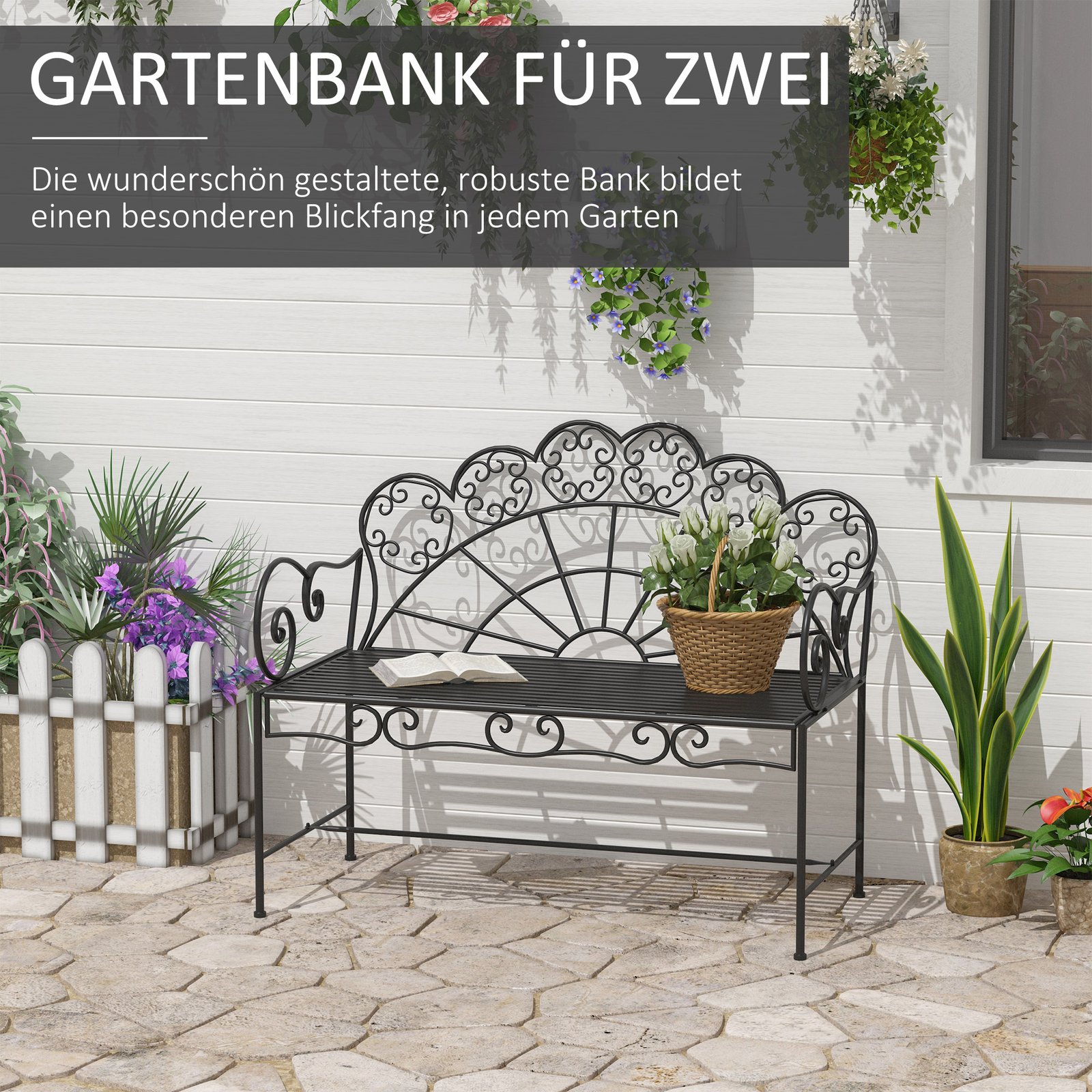 Su šiuo aukštos kokybės sodo suoliuku, pasižyminčiu nesenstančiu elegantišku dizainu, jūsų sodas ar balkonas bus labai pagražintas ir atnaujintas. Šis juodos spalvos suoliukas pagamintas iš milteliniu būdu dengtų metalinių vamzdžių. Tvirta konstrukcija suteikia suoliukui didelę apkrovos galią – iki 200 kg. Atsisėskite ant šio sodo suoliuko ir mėgaukitės grynu oru bei malonia saule laisvalaikiu!