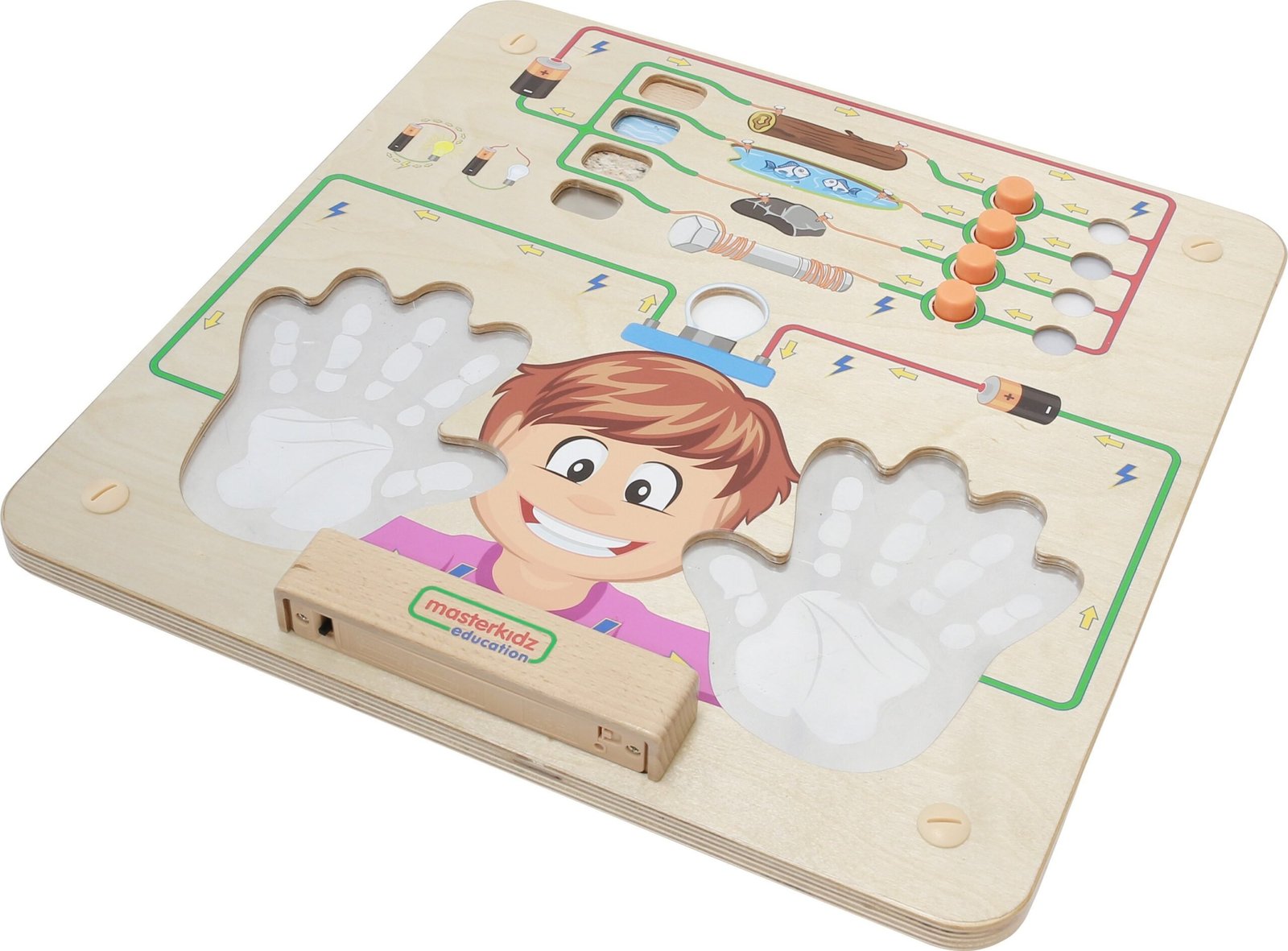 Atraskite elektros pasaulį su šia edukacine laidumo eksperimentų lenta! Šis žaislas, skirtas vaikams nuo 3 metų, leidžia saugiai ir įtraukiančiai eksperimentuoti su elektros grandinėmis. Dvi interaktyvios grandinės padės mažyliams suprasti, kaip veikia elektros srovė, išbandyti skirtingų medžiagų laidumą ir netgi atrasti, kad žmogaus kūnas praleidžia elektrą. Žaidimas su šia lenta ugdo smalsumą ir skatina tyrinėti supantį pasaulį.