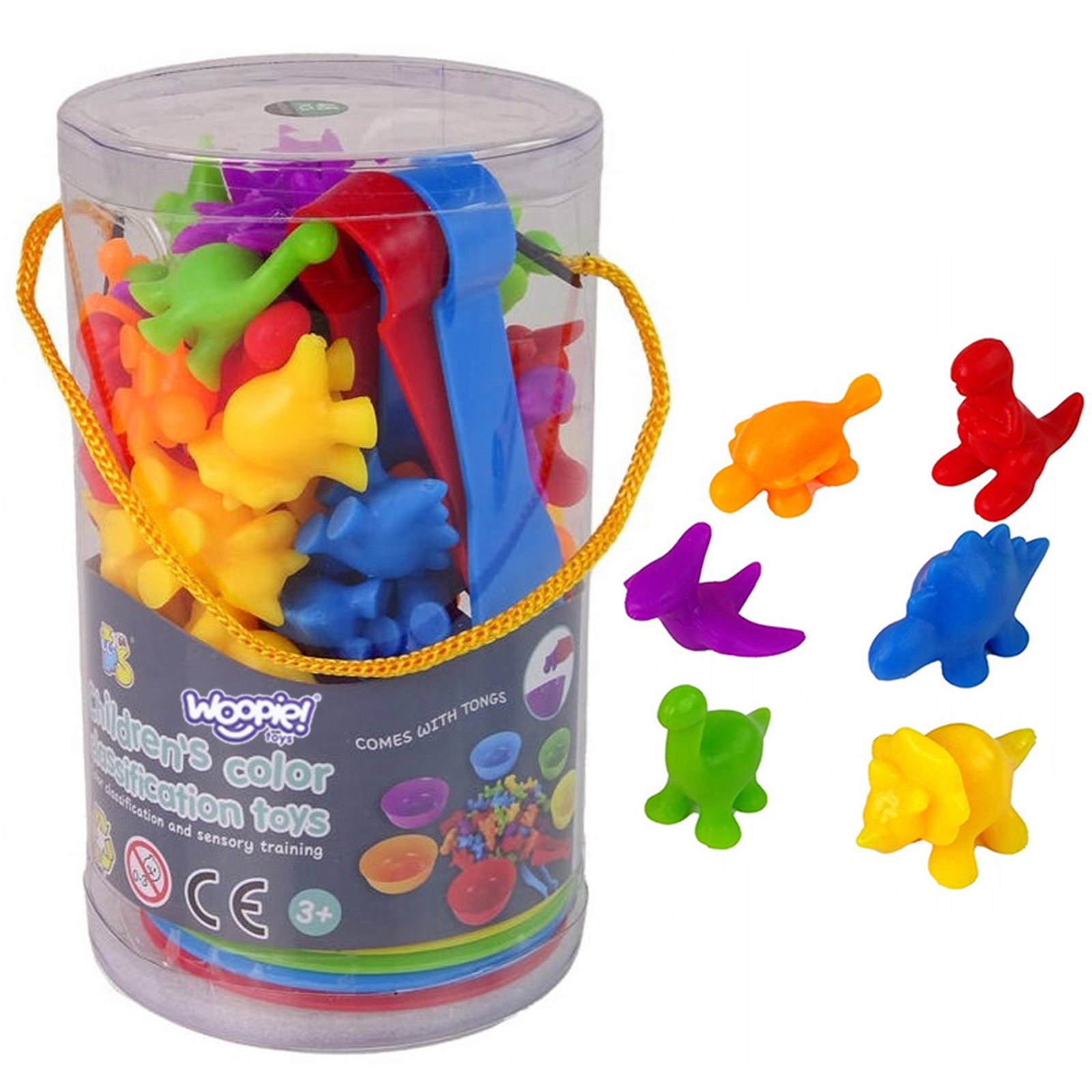 Edukacinis dinozaurų rūšiuoklis yra paprasta, bet veiksminga mokymosi ir žaidimo priemonė. Žaidimas vyksta taip: visos figūrėlės išberiamos ant stalo, o po to, naudojant žnyplutes, kiekviena figūrėlė perkeliama į atitinkamos spalvos dubenėlį.