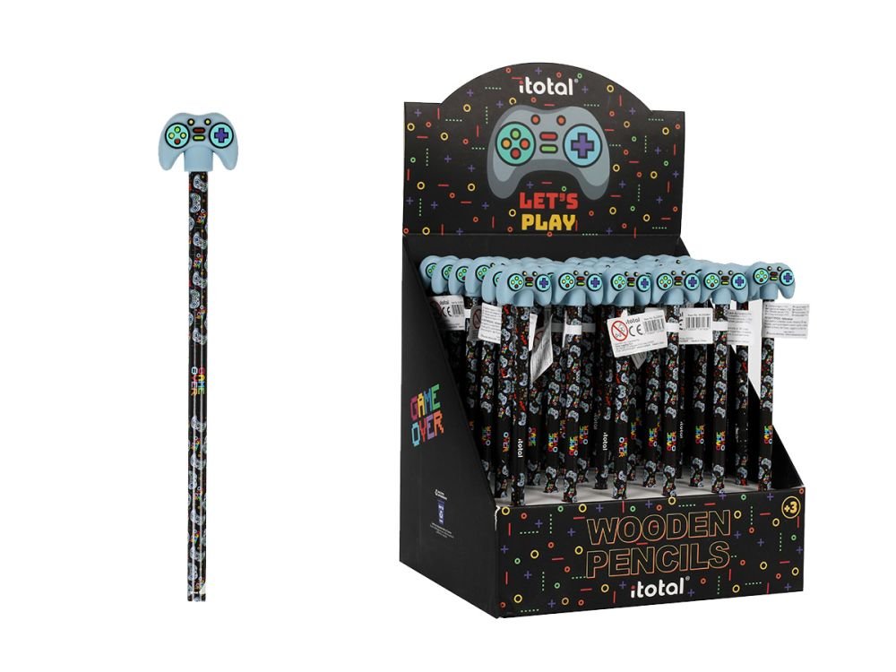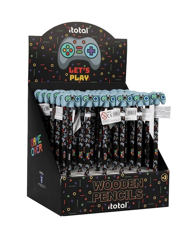 Ekspozicinė pakuotė: 36 vnt. medinių pieštukų su 3D žaidimų motyvais