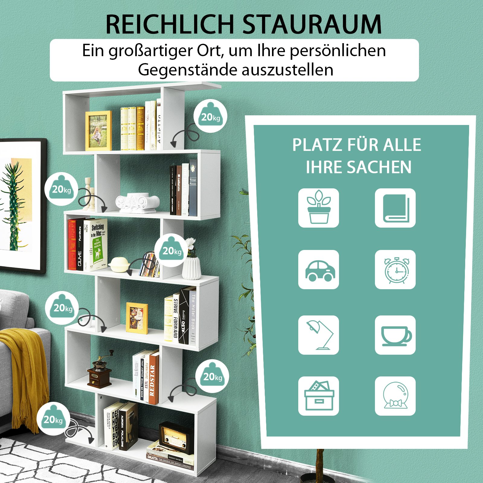 Elegantiška S formos 6 lygių pastatoma lentyna (Balta)
