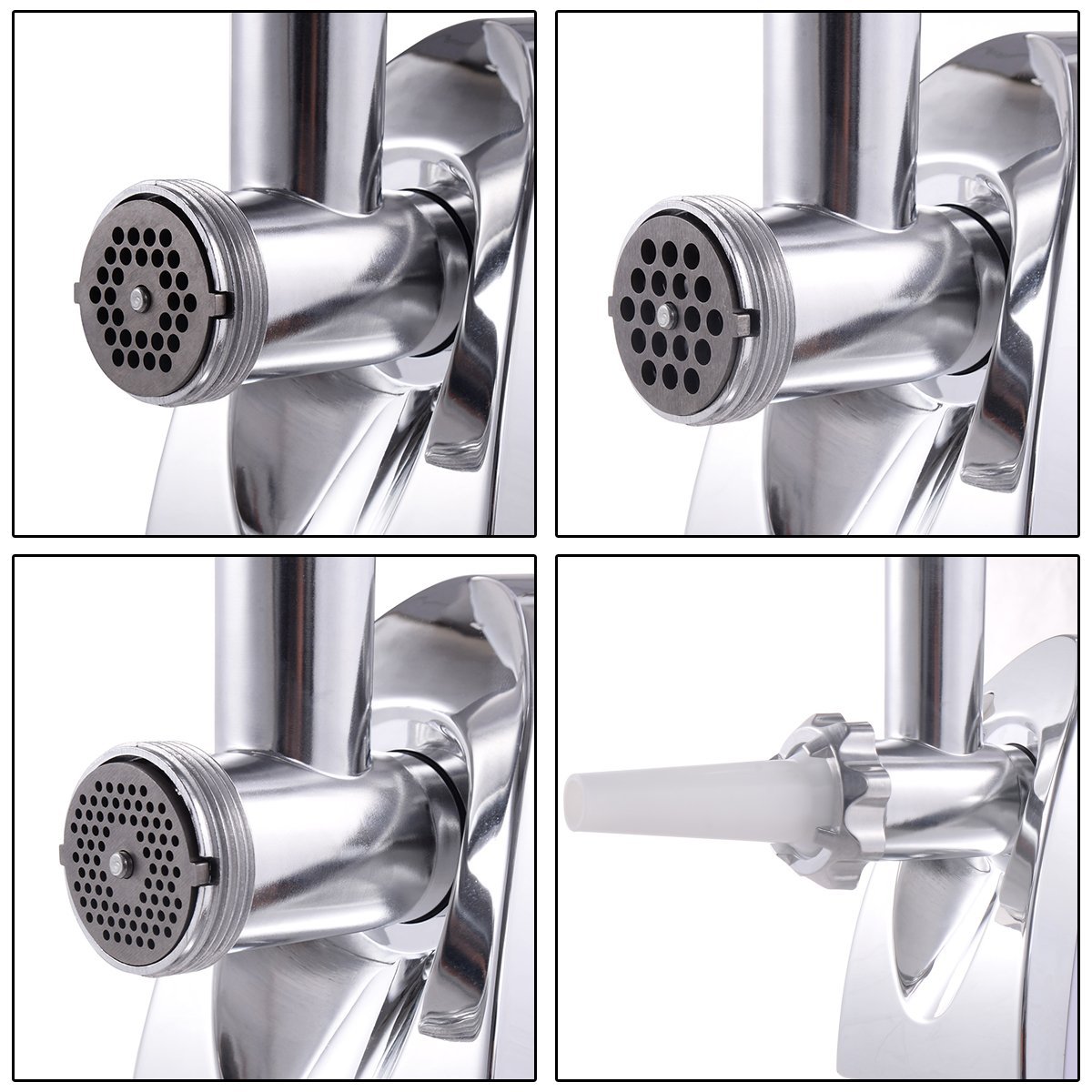 - Universalus naudojimas: Trys nerūdijančio plieno pjaustymo diskai (3, 5, 7 mm) leidžia malti mėsą, žuvį iki norimo rupumo, taip pat gaminti Kebbe ir dešras.