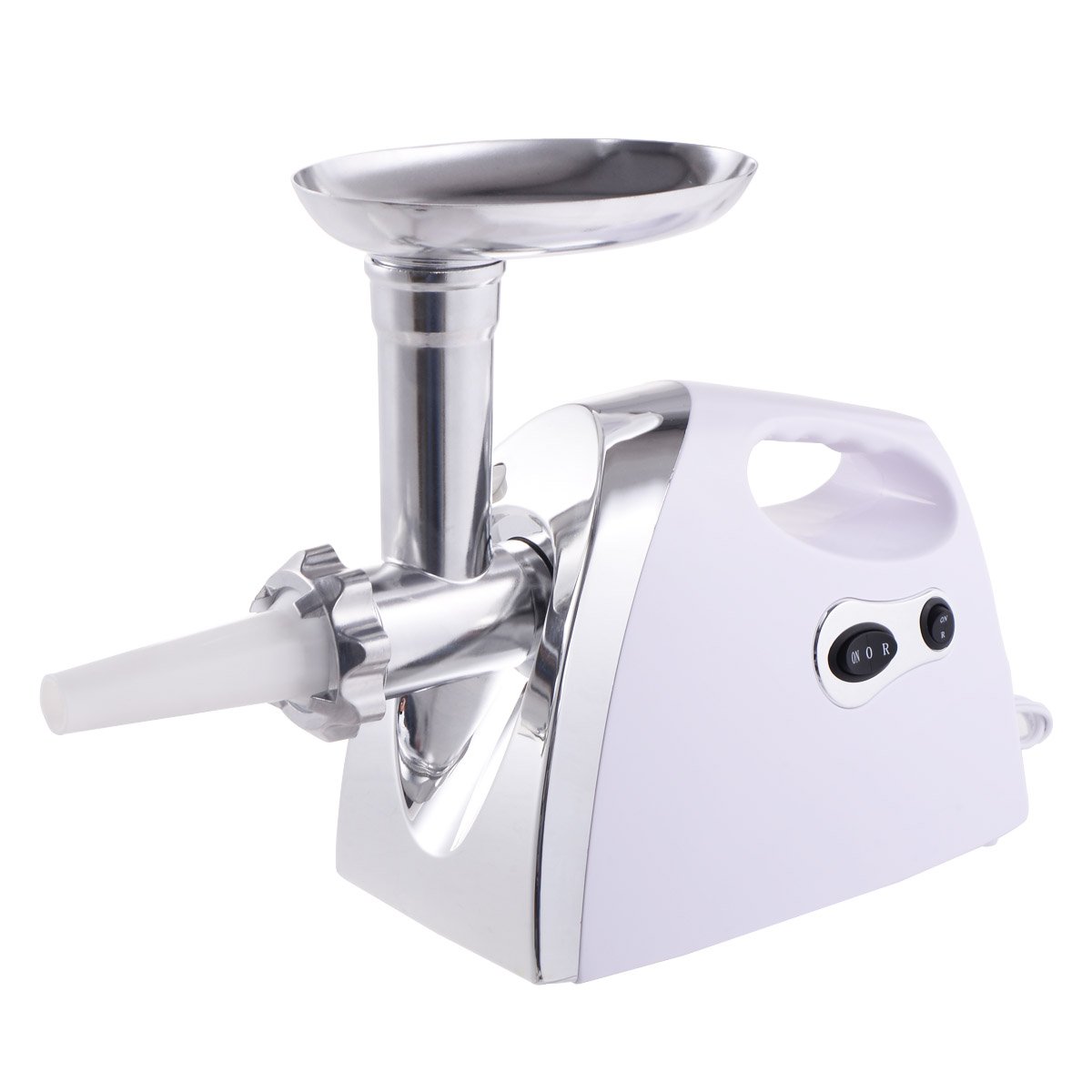 Elektrinė mėsmalė su dešrų kimšimo funkcija ir 3 pjaustymo diskais (Balta)