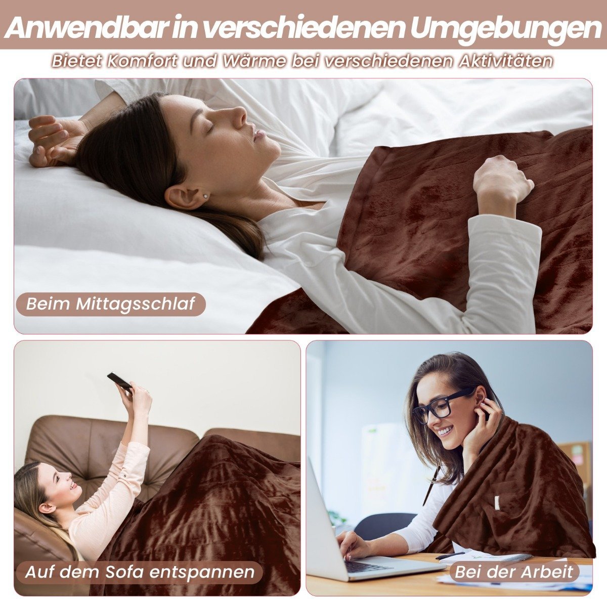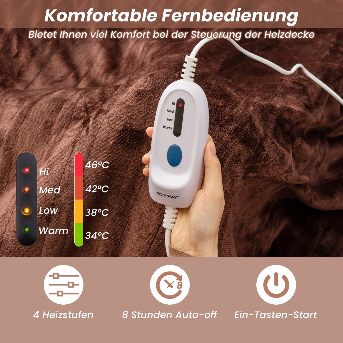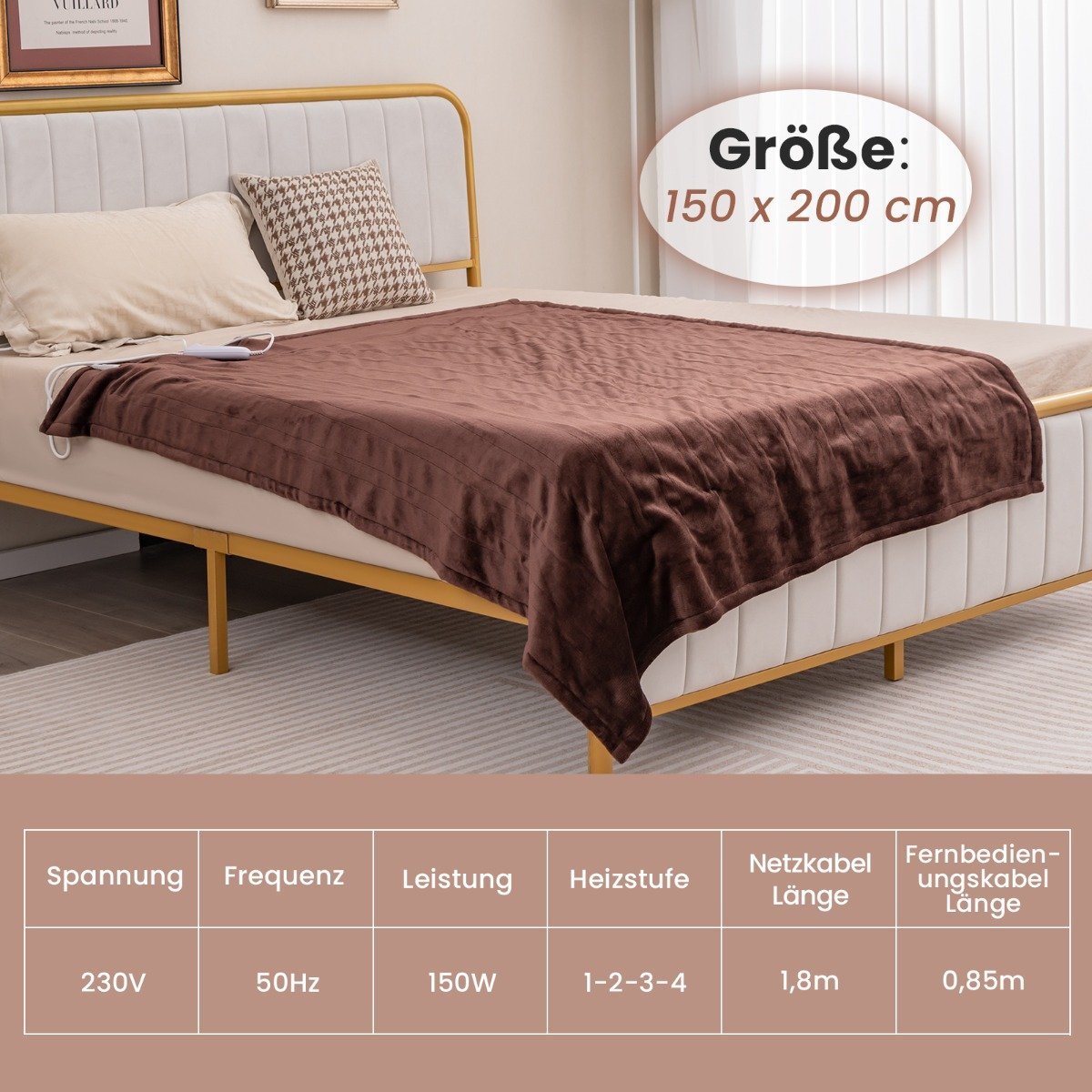 Elektrinė šildoma antklodė 150×200 cm (Kavos)