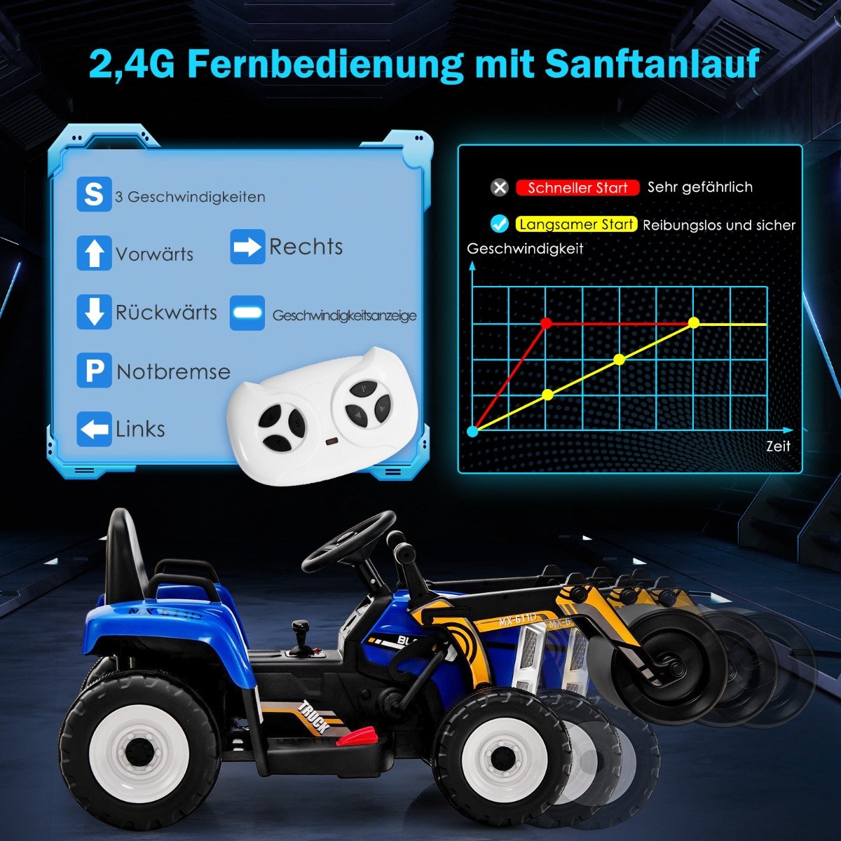 - Lengvai valdoma pedalais ir vairu; turi tokias funkcijas kaip „švelnus startas“.