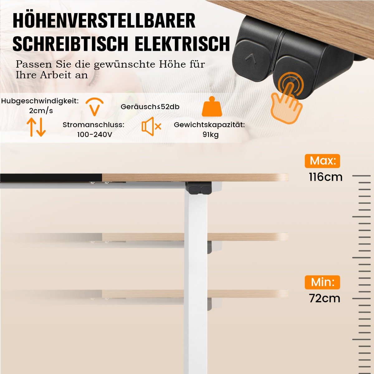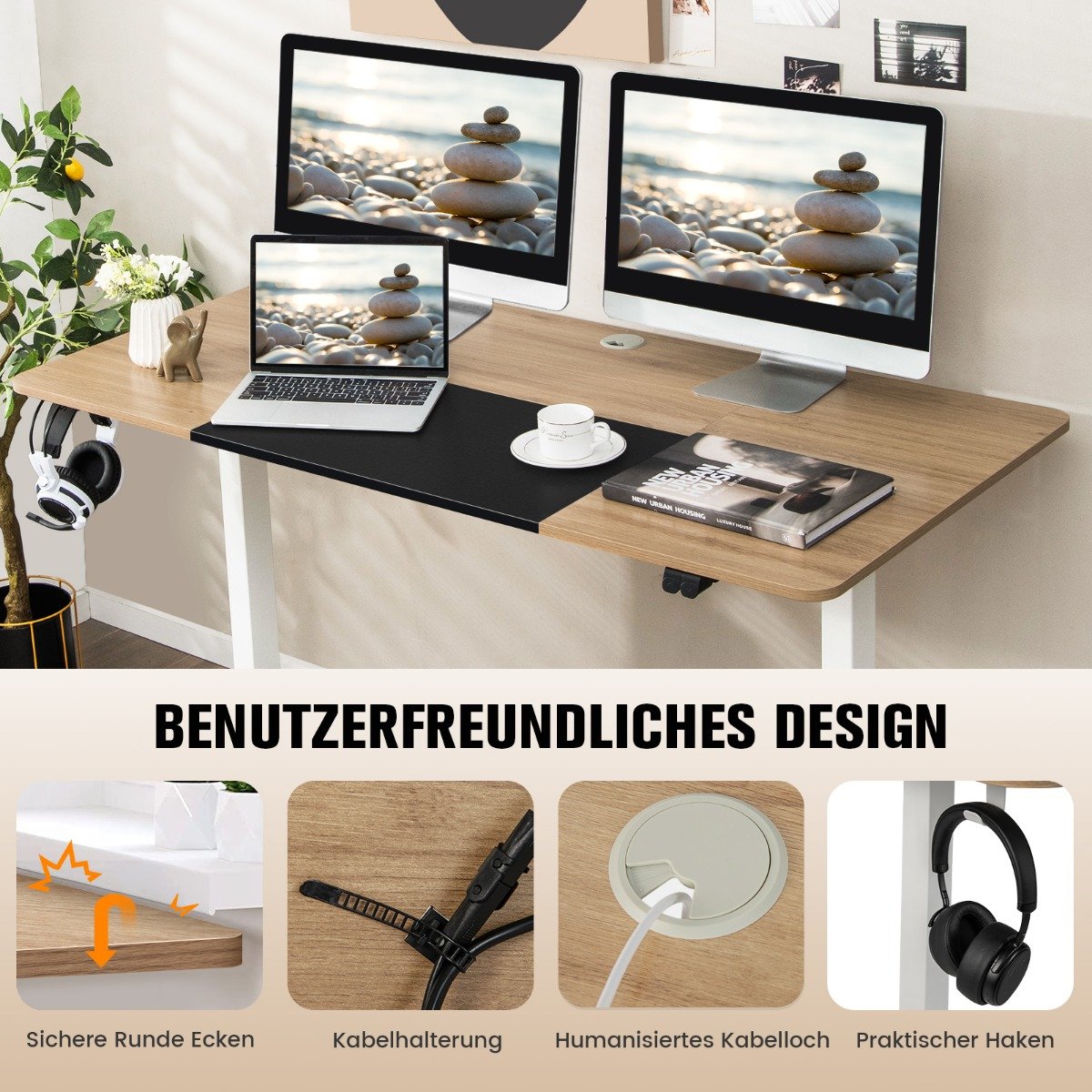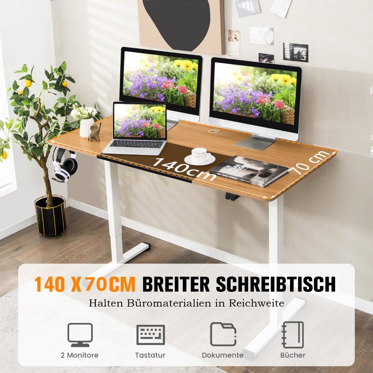 Elektrinis aukščio reguliavimo rašomasis stalas 140 x 70 cm (Natūrali)