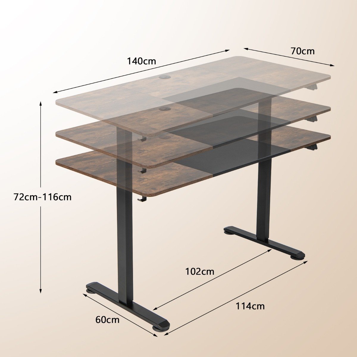 Elektrinis aukščio reguliavimo rašomasis stalas su kabliuku (Ruda)