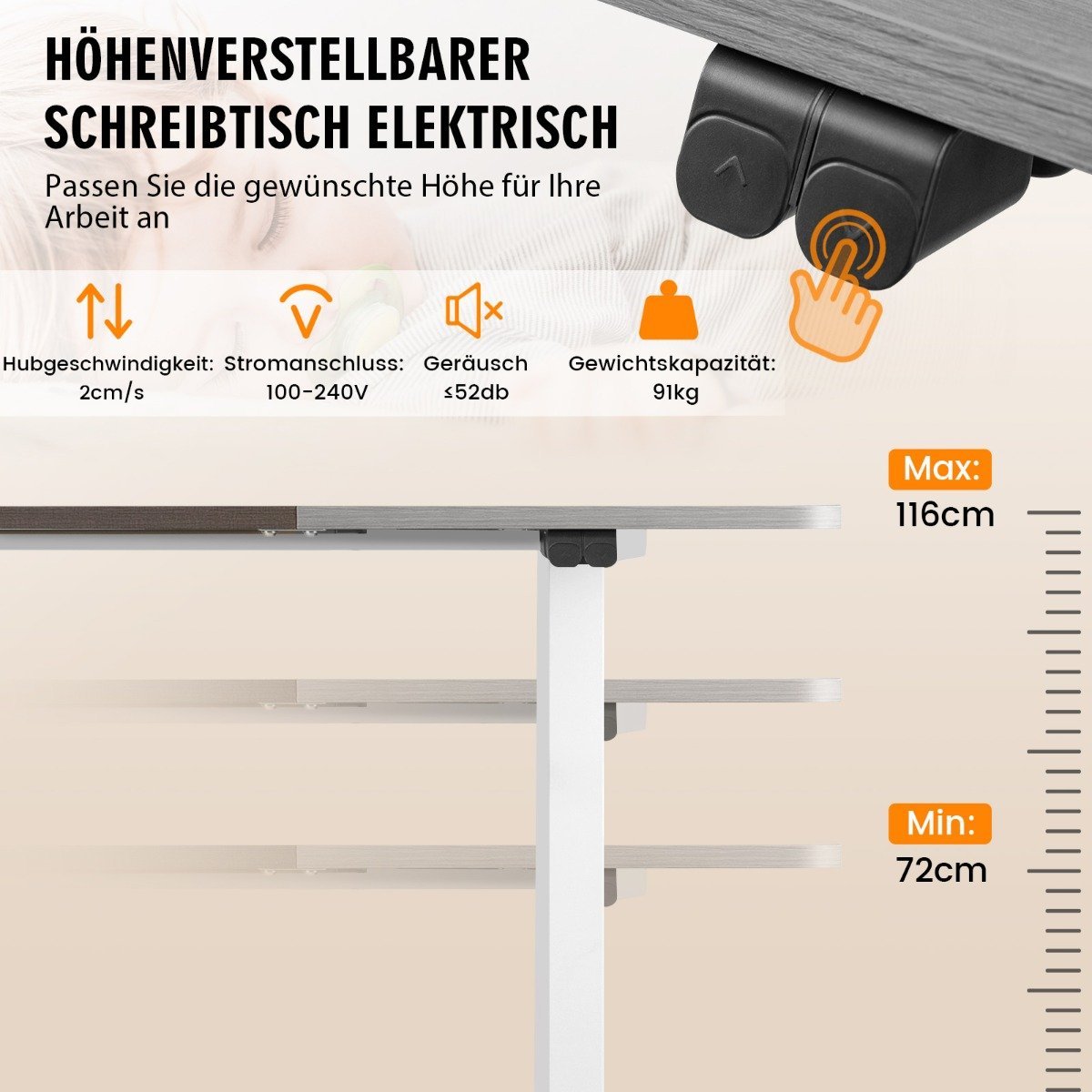 Atnaujinkite savo darbo erdvę su šiuo elektriniu, aukštį reguliuojančiu rašomuoju stalu, leidžiančiu patogiai dirbti sėdint ar stovint. Jis sukurtas siekiant padidinti Jūsų komfortą ir produktyvumą.