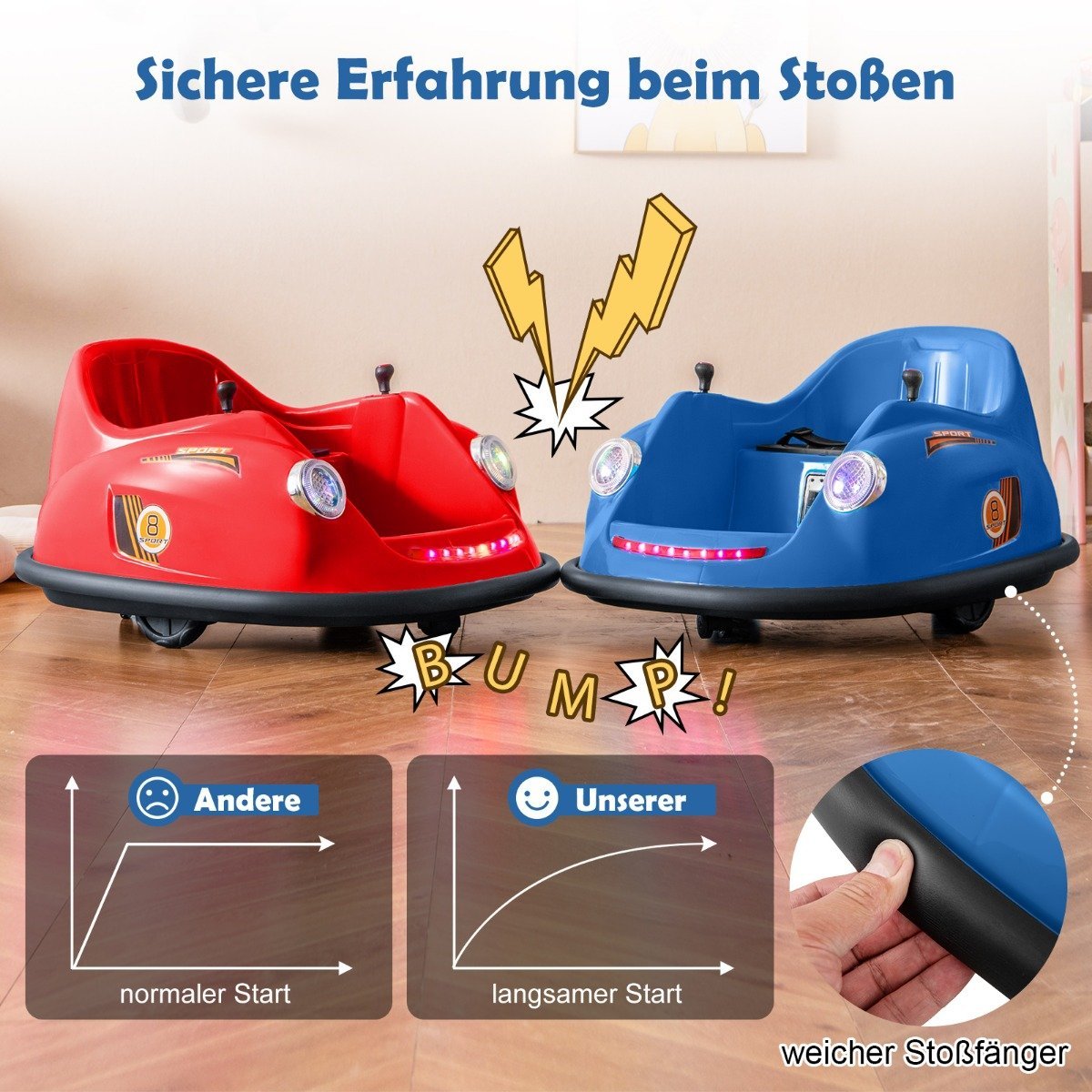 - Ryškios LED šviesos ir muzikos funkcijos paverčia kiekvieną kelionę ypatinga.