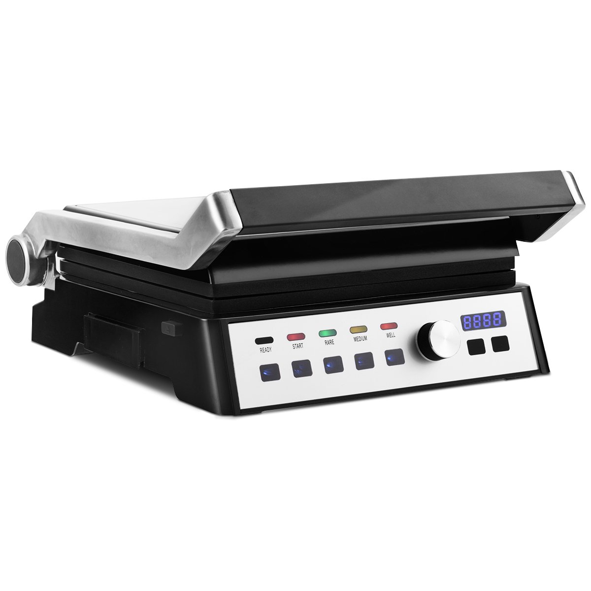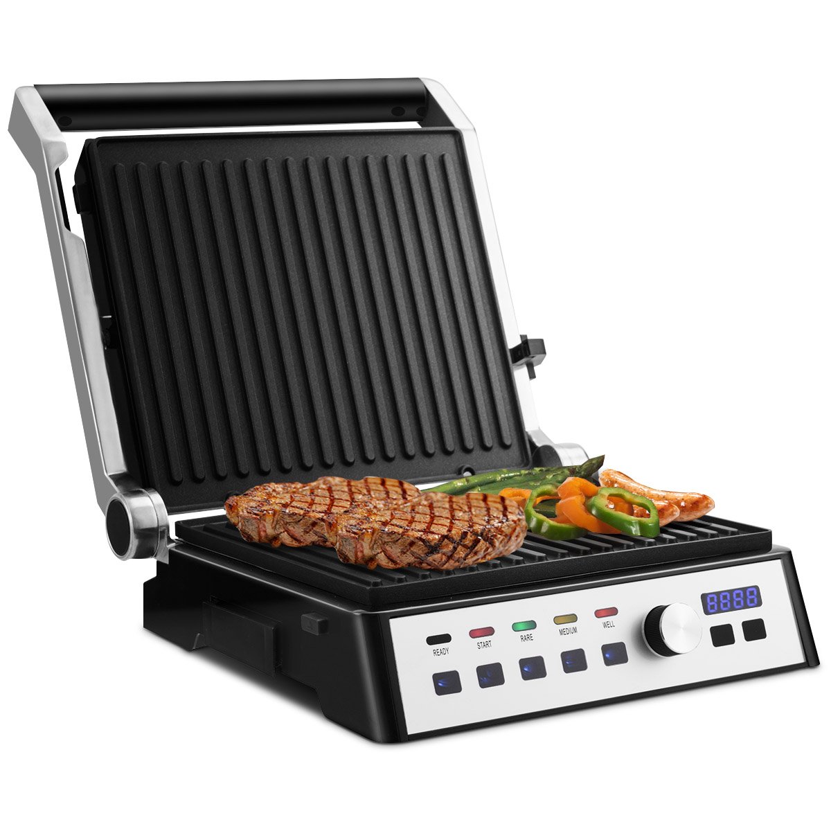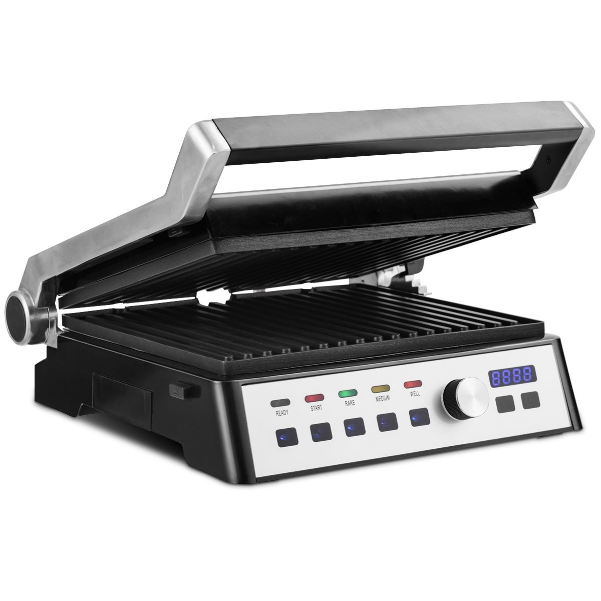 Elektrinis kontaktinis grilis su aukščio reguliavimu ir 2000 W galios (Sidabrinė)