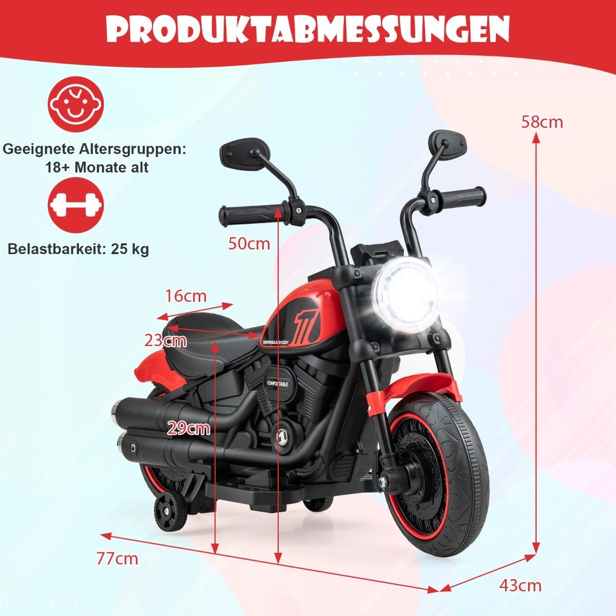 Dovanokite savo mažyliui nepamirštamą vairavimo patirtį su mūsų elektriniu motociklu! Galingas variklis ir ilgaamžė baterija užtikrina puikų našumą. Paprasti mygtukai, vairas ir akceleratoriaus pedalas leis vaikams lengvai pradėti kelionę.